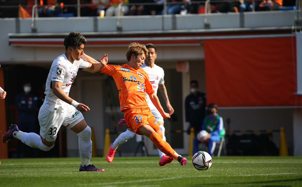 S-Pulse courageously enough went on the attack after the pause and were rewarded with Takahashi’s first ever goal for his club in the 54th minute when he was sent through into the box by a fine pass by Kamiya to finally shoot between the legs of the opposite goal keeper with his left foot.