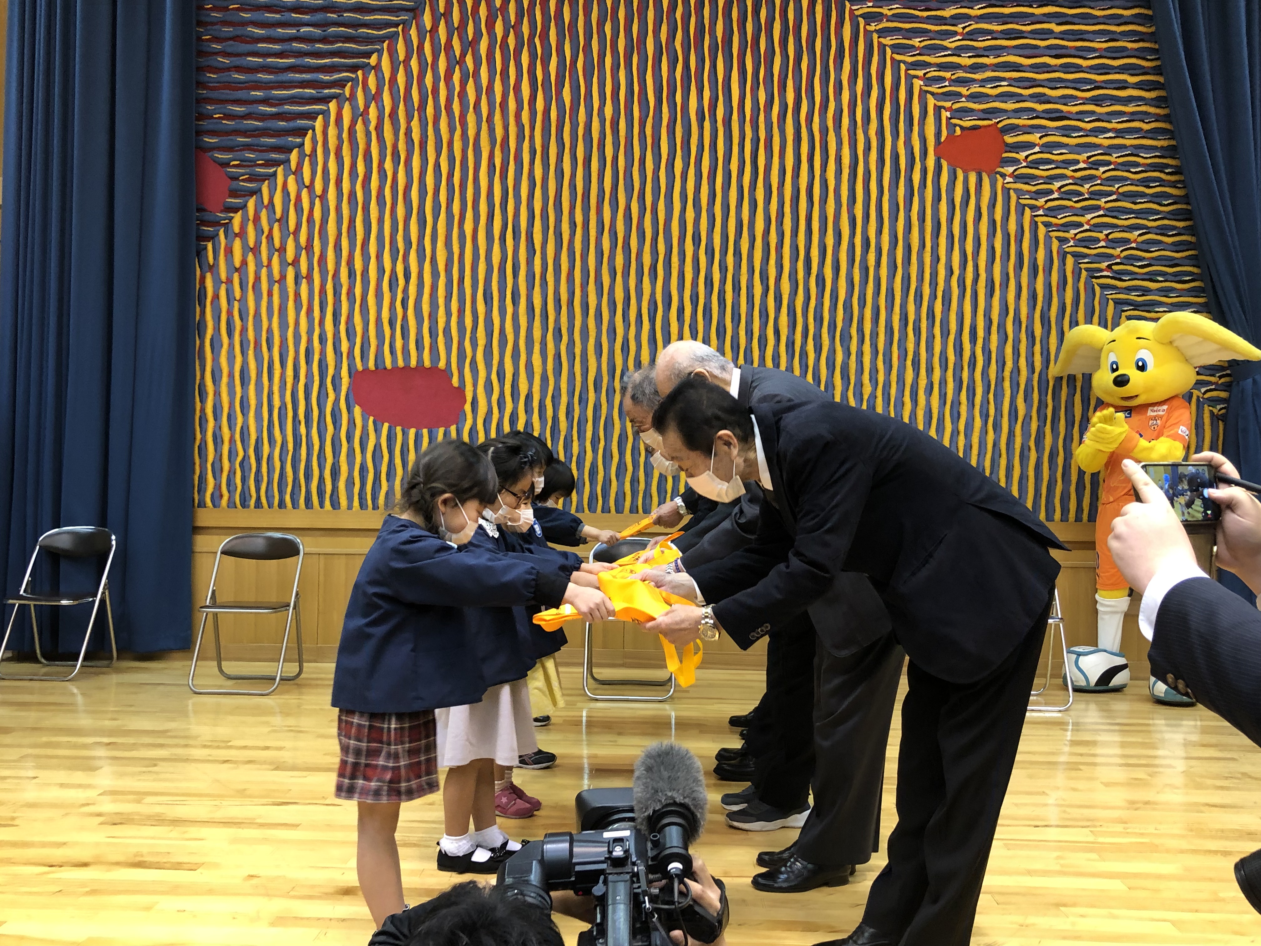 式の間緊張していた園児たちですが、贈呈式終了後にパルちゃんやシズラとの記念撮影では笑顔になりました。