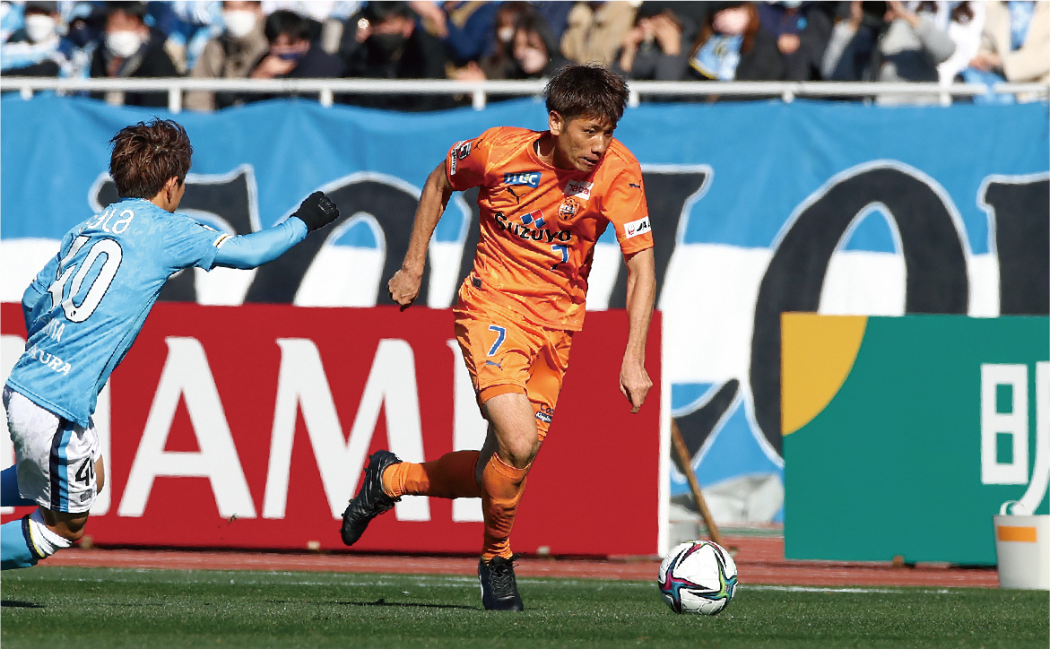 2月26日、《静岡ダービー》。同点で迎えた67分、左サイドでボールを受けた中山克広がカットインからミドルシュートを叩き込み逆転に成功した。試合後、中山は「あのシーンは瑛ちゃん(片山瑛一)のメッセージのこもったランニングがあったおかげで決めることができました。瑛ちゃんに感謝したいです」と賛辞を惜しまなかった。片山の真骨頂が発揮された場面だ。