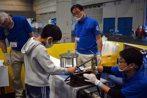 発泡スチロールのカップに好きな言葉や絵を描き、それを水深1000m以上と同じ水圧をかけることができる加圧機に入れると、カップはどうなるかな!?
