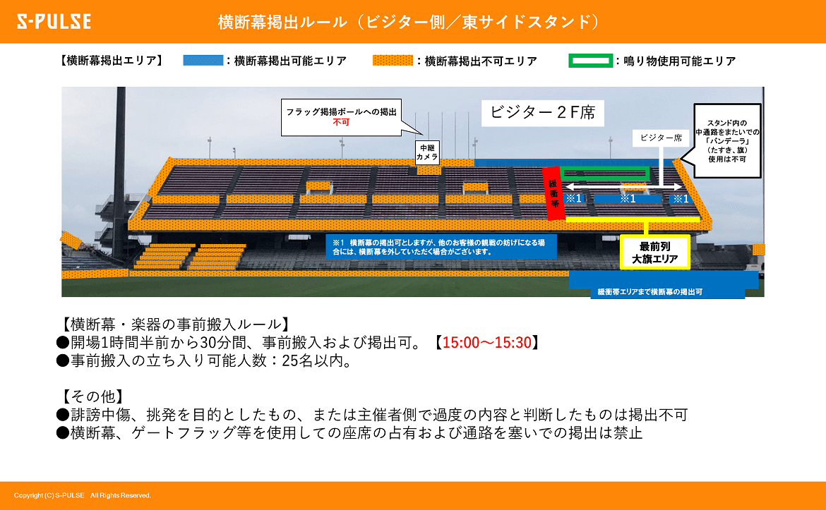 ※ビッグフラッグの掲出、観客がいる複数の座席を覆う形での掲出は不可