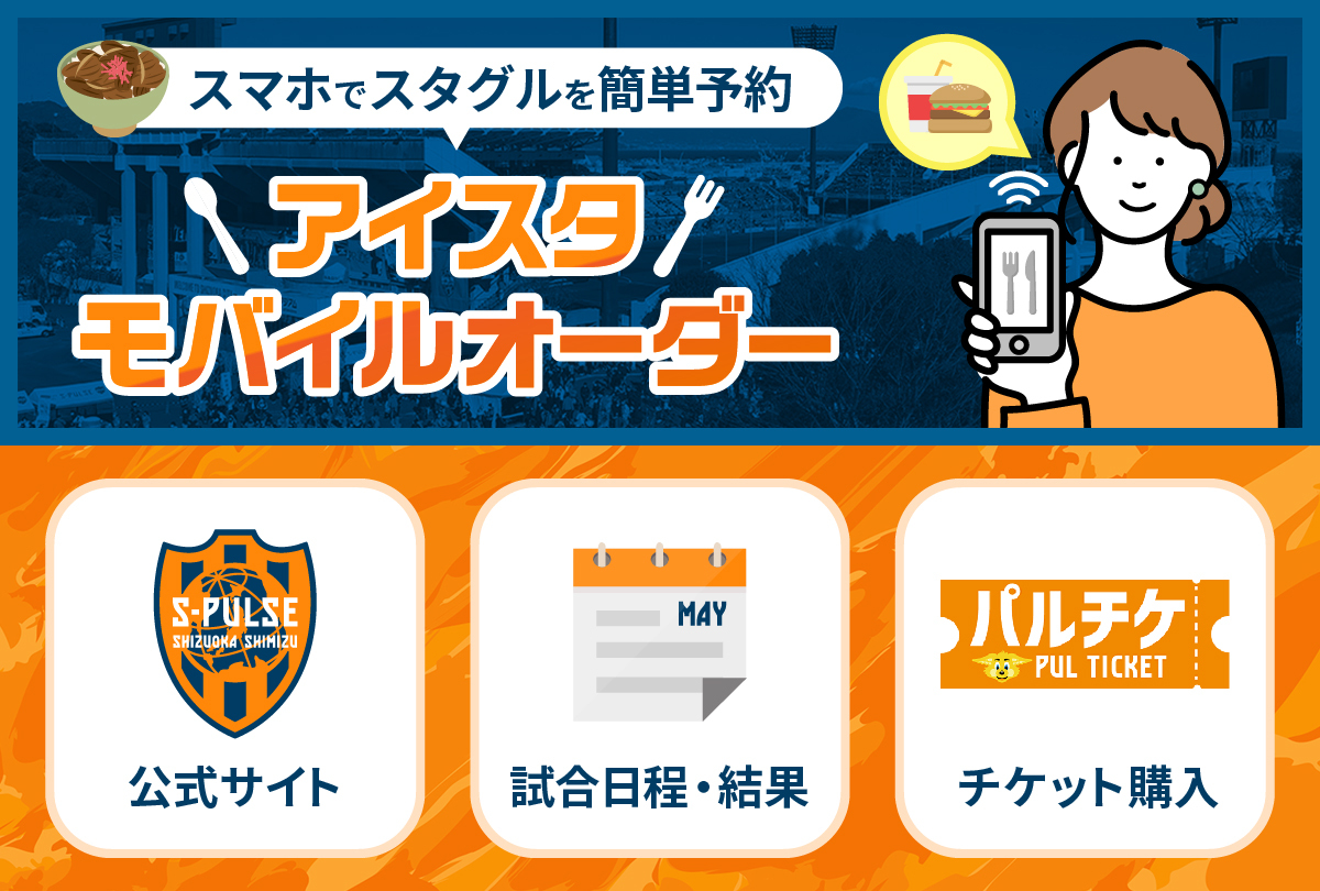 エスパルス公式LINEから申し込み可能です。リッチメニューの「アイスタモバイルオーダー」からご注文ください。エスパルス公式LINEに登録されていない方は友達登録をお願いします。