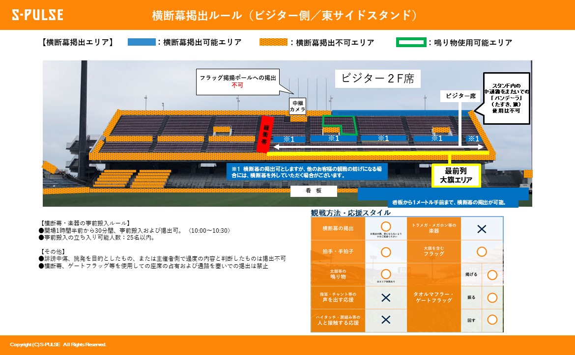 ・ビジターエリア(東サイドスタンド2F指定席の一部)を設置いたします。