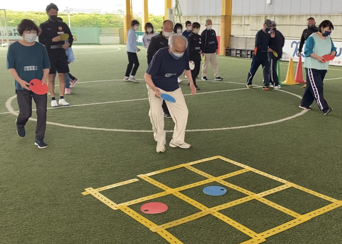 この企画は、60歳以上の皆様を対象に、心身の健康と頭の活性化及び”楽しい”コミュニティーの場をご用意し、生涯現役で楽しく生活していけることを目的とした様々な運動プログラムを提供する活動で、今回は16名の皆さんにご参加いただきました。