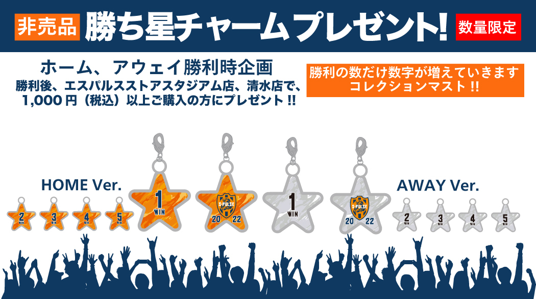 また、S-PULSE STOREでは、勝利時翌営業日の開店から、「勝ち星チャーム(非売品)」を先着でプレゼントします。