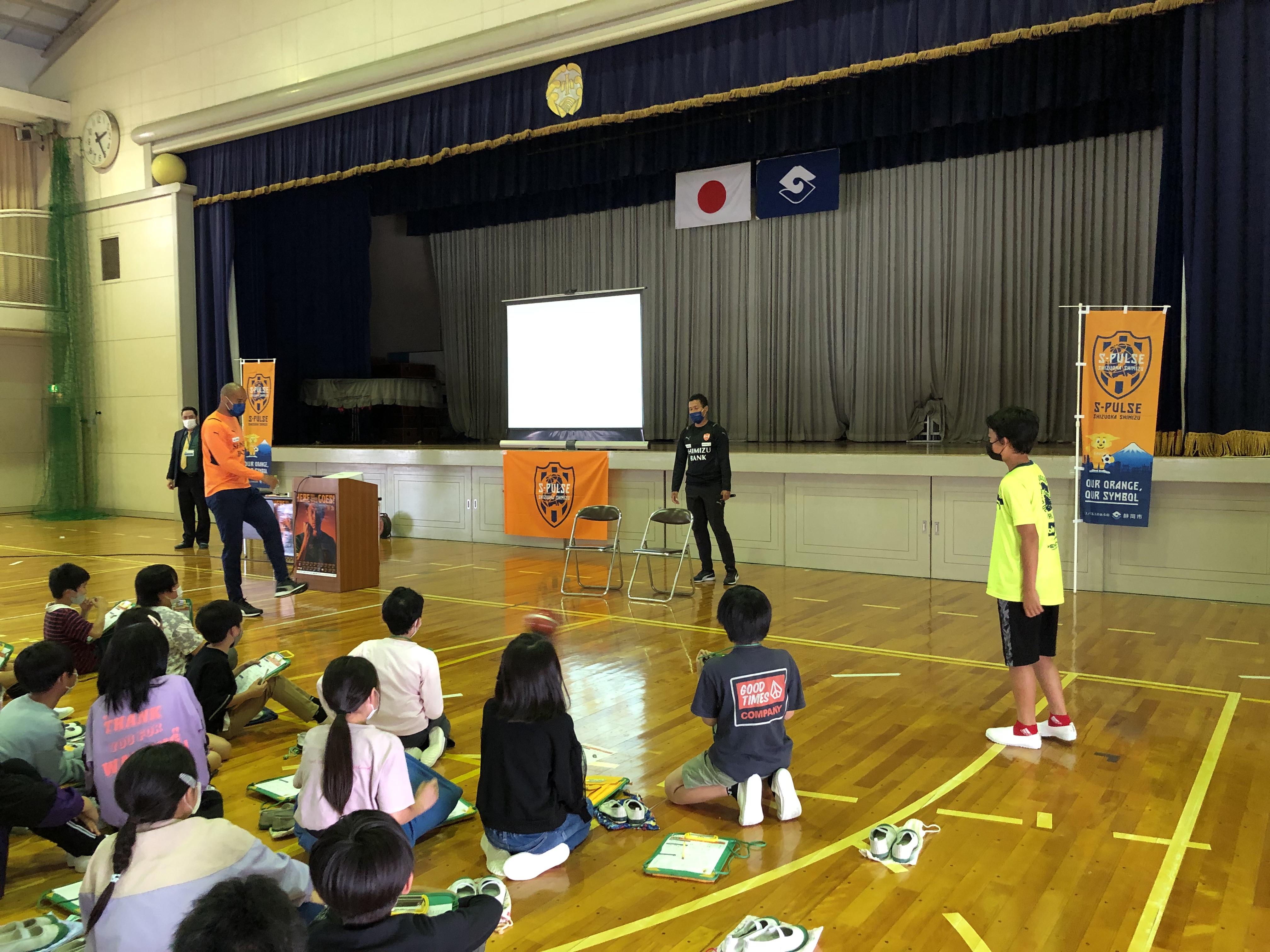 エスパルスが6月18日(土)に開催するホームゲームイベント『ブラジルデー』(2022明治安田生命J1リーグ第17節 アビスパ福岡戦 18時00分K.O. @アイスタ)に関する特別企画として、5月10日(火)にチアゴ サンタナ選手が静岡市立清水興津小学校(5、6年生174名)を訪れ、特別ゲストとして出張授業に参加しました。