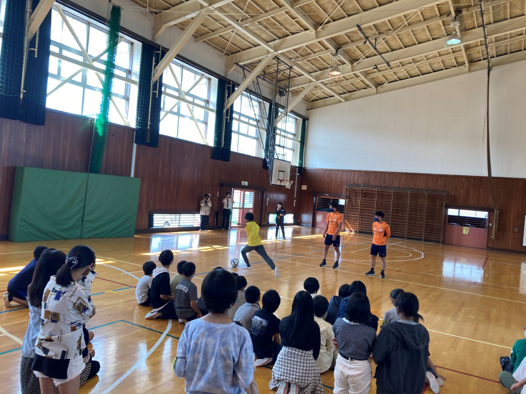 5月10日(火)エスパルスが実施するホームゲーム招待企画『東部小学生招待事業』のPRのため、山原怜音選手、千葉寛汰選手がファミリータウン富士宮市にある富士宮市立貴船小学校(6年生86名)を訪れ、交流を深めました。