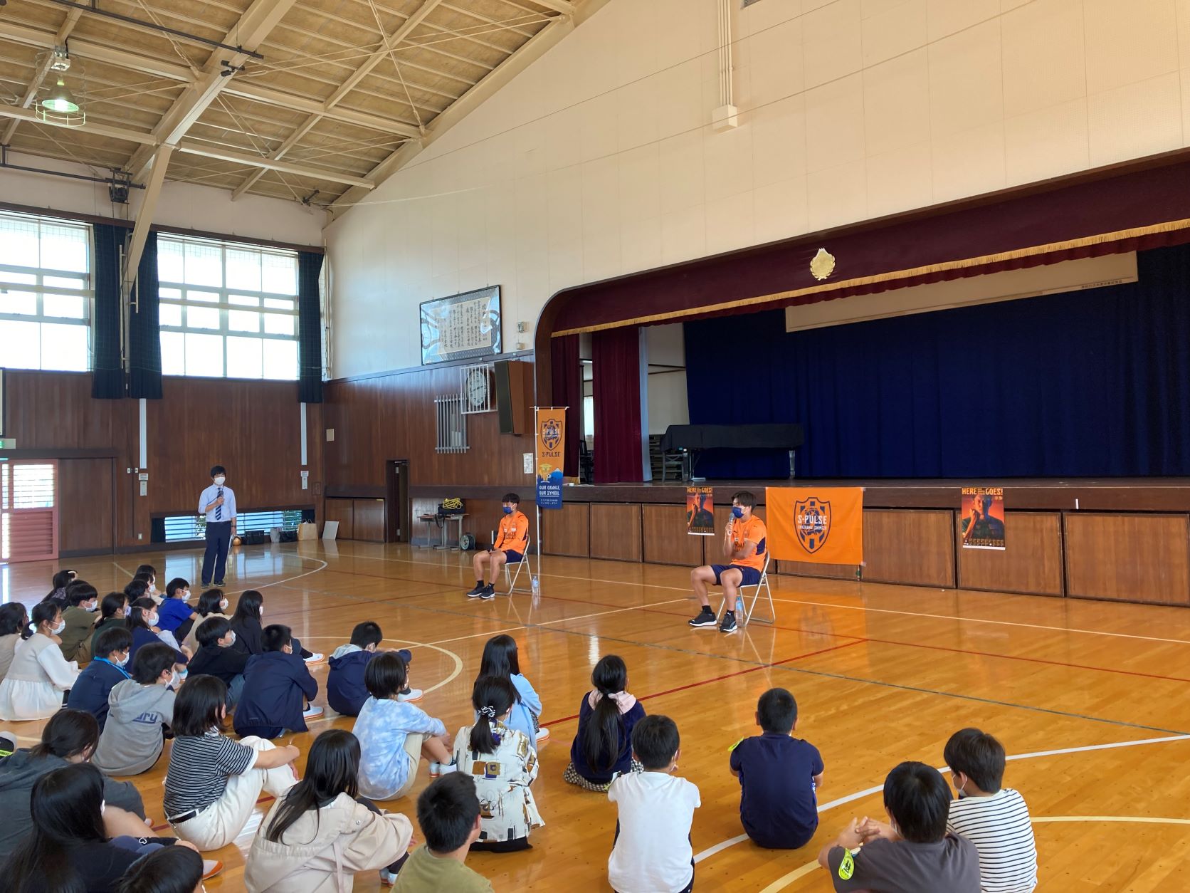 最後に、代表児童からお礼の言葉を受けた両選手は、「夢がある人もまだない人も、これから夢や目標が見つかったら思い切り突き進んでください。一緒に頑張りましょう!ぜひアイスタにサッカーを見に来てください。」とメッセージを伝えました。