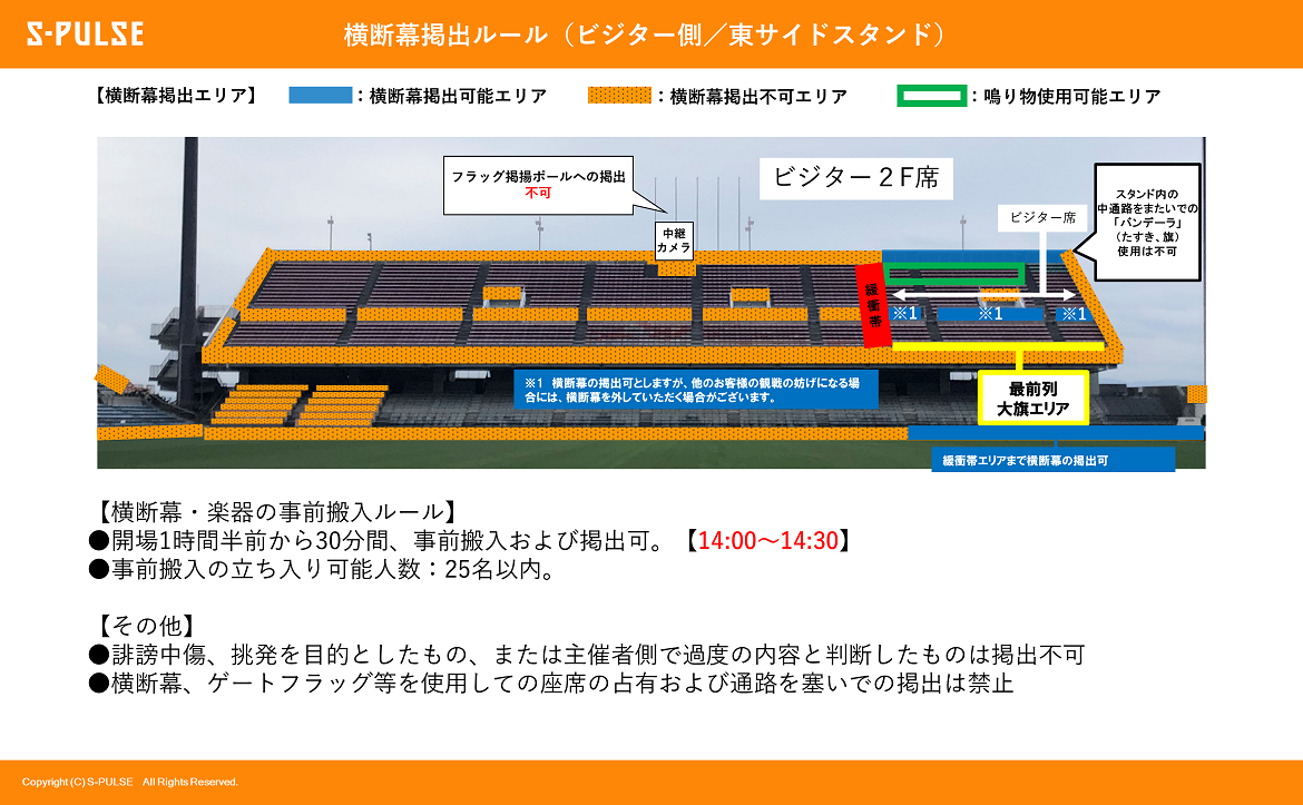 ・ビジターエリア(東サイドスタンド2F指定席の一部)を設置いたします。