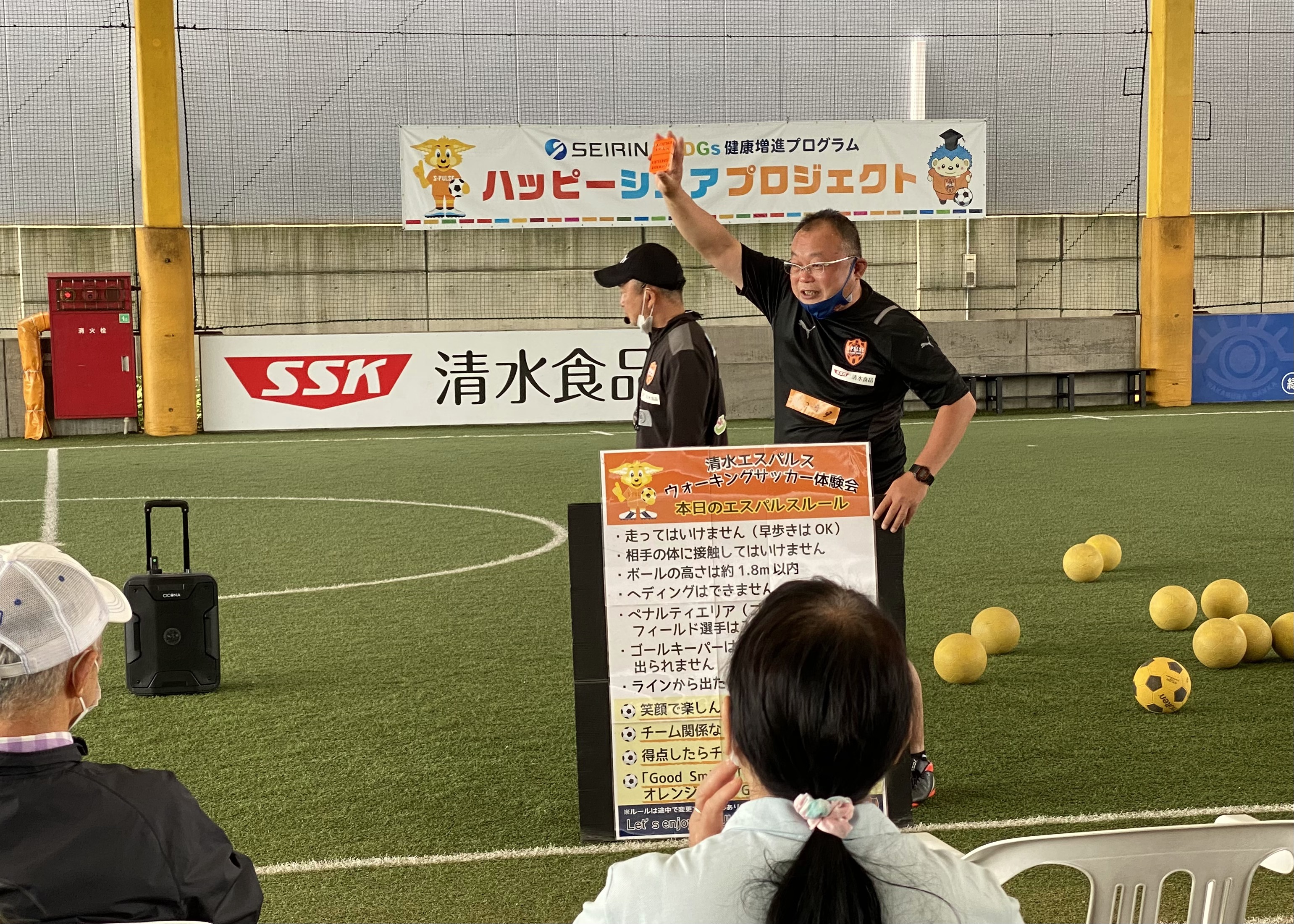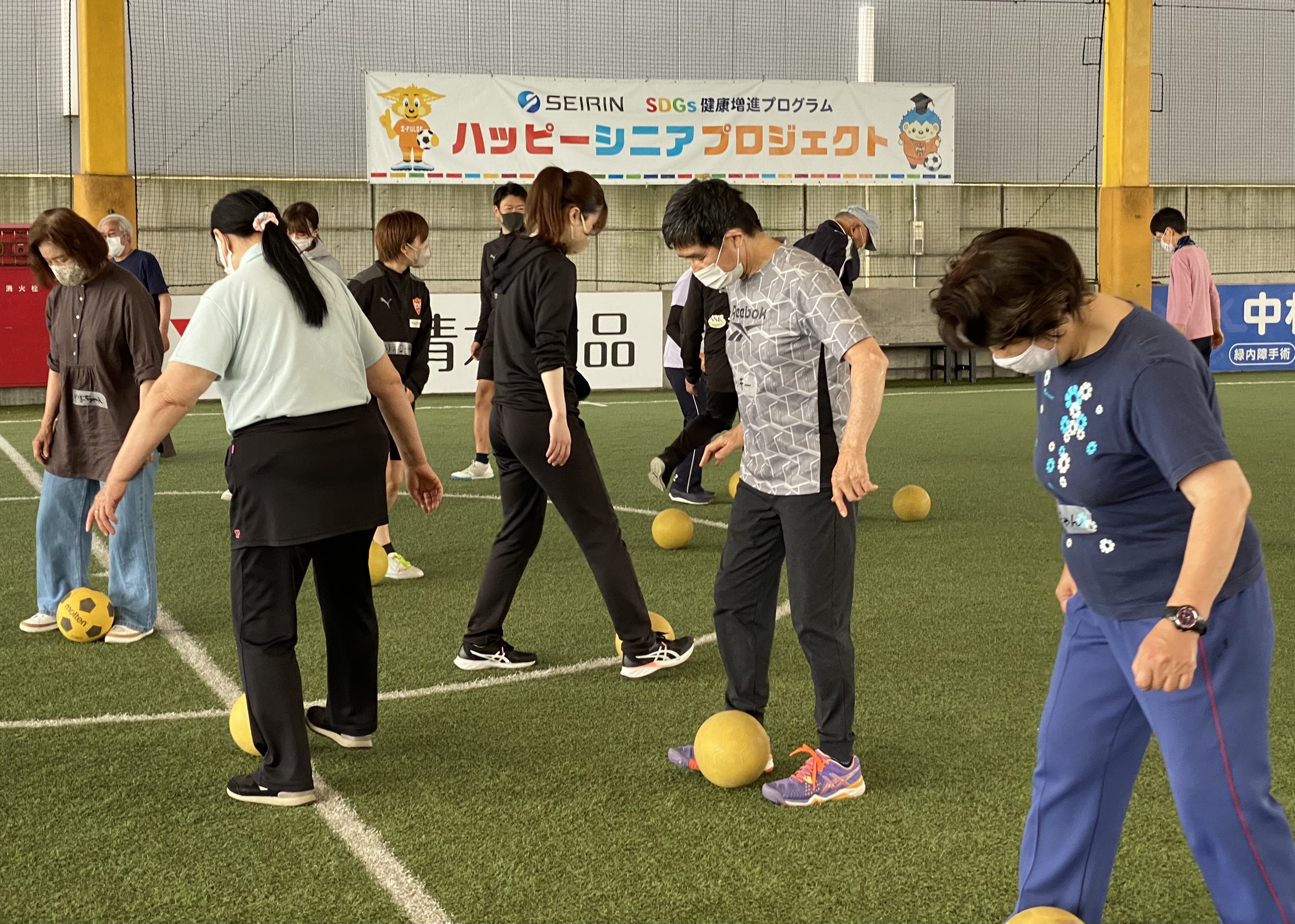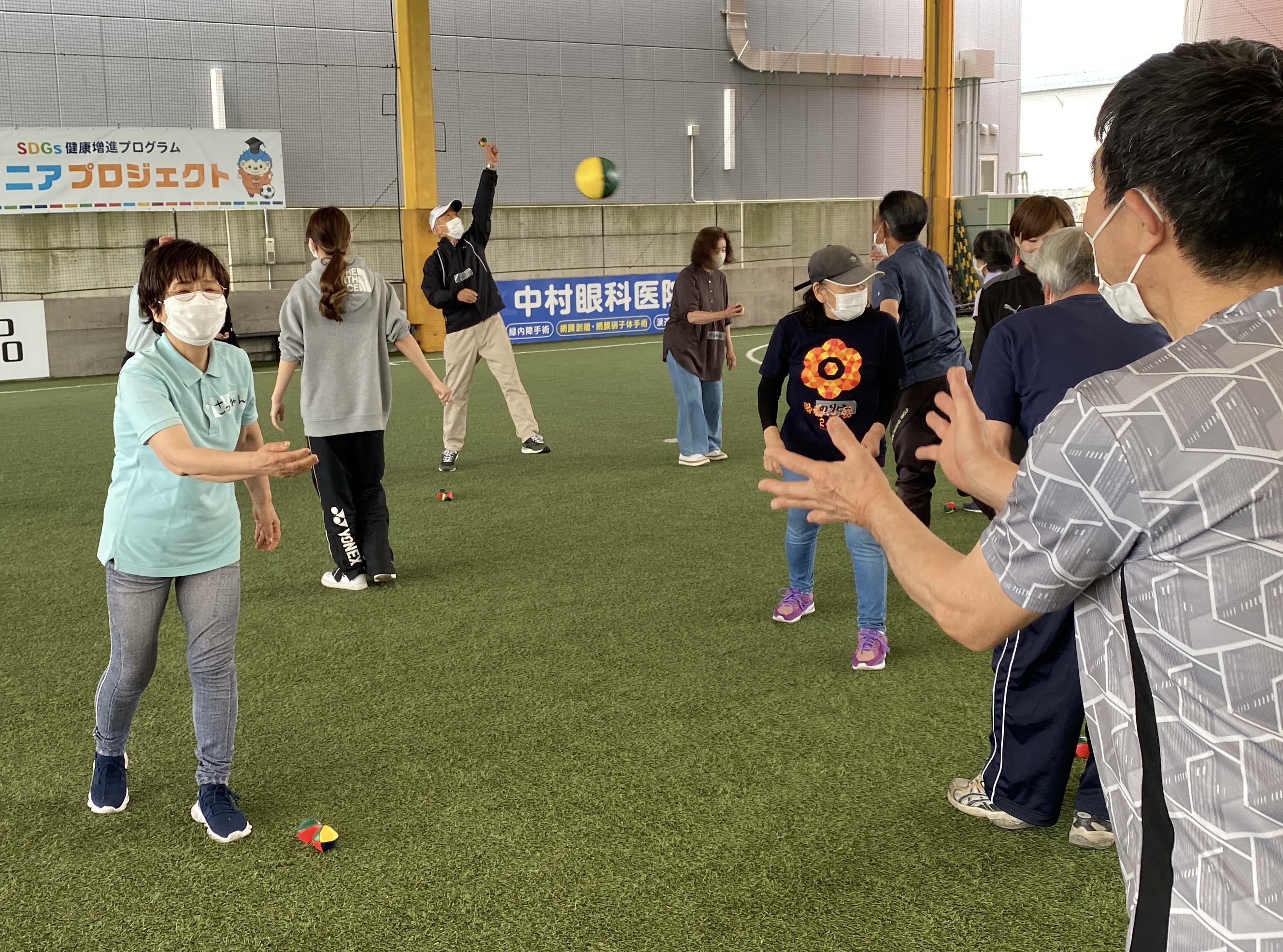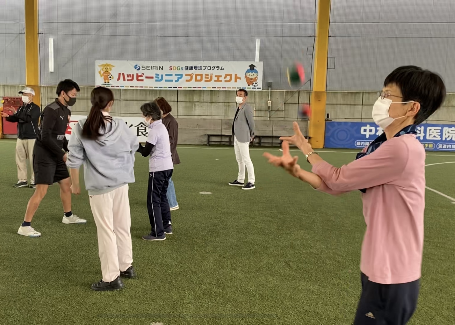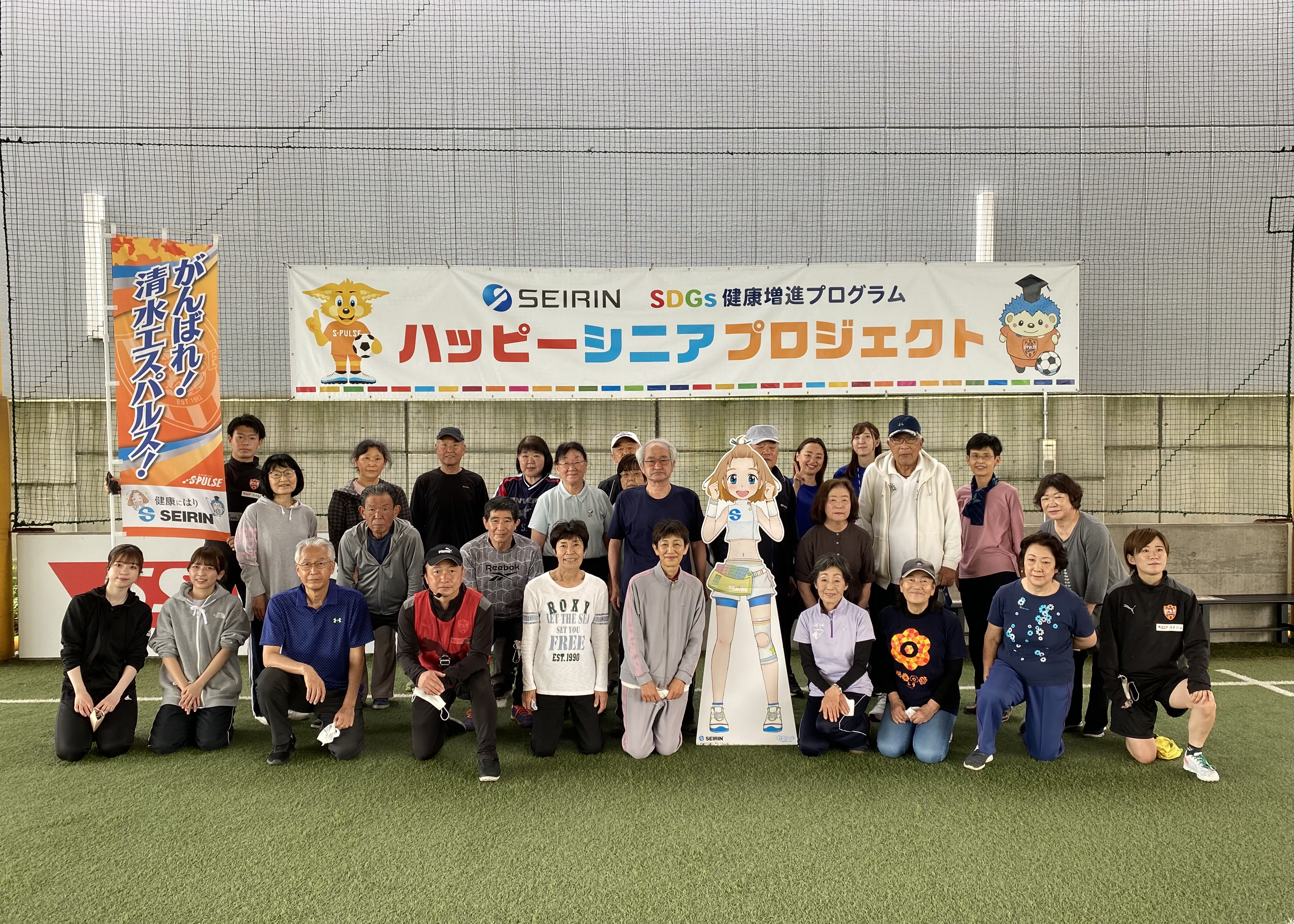 5月20日(金)、エスパルスドリームフィールド清水(静岡市清水区袖師町)にて、第2回 SDGs健康増進プログラム セイリン PRESENTS 「ハッピーシニアプロジェクト」 ~運動とはりで健康に~ を開催しました。