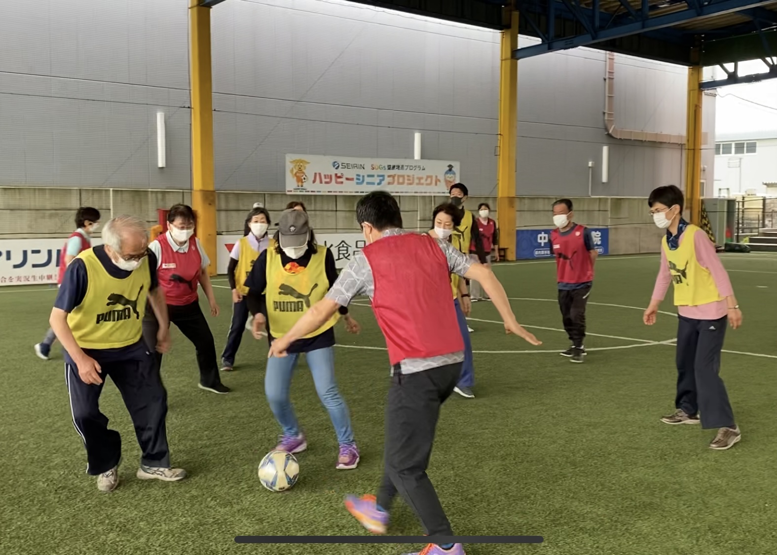 走るのも、ぶつかるのも禁止のウォーキングサッカーは、体力に自信がない方でも怪我無く安心です。今回初めてチャレンジした皆さんも、普段サッカーをプレーすることが全くない皆さんでも、楽しく安全にプレーすることができました。ゴールが決まった瞬間には、チームメイトと喜びを共有しあい、身体や脳の活性化だけでなく、コミュニティの場としても非常に楽しい時間を過ごしていただきました。