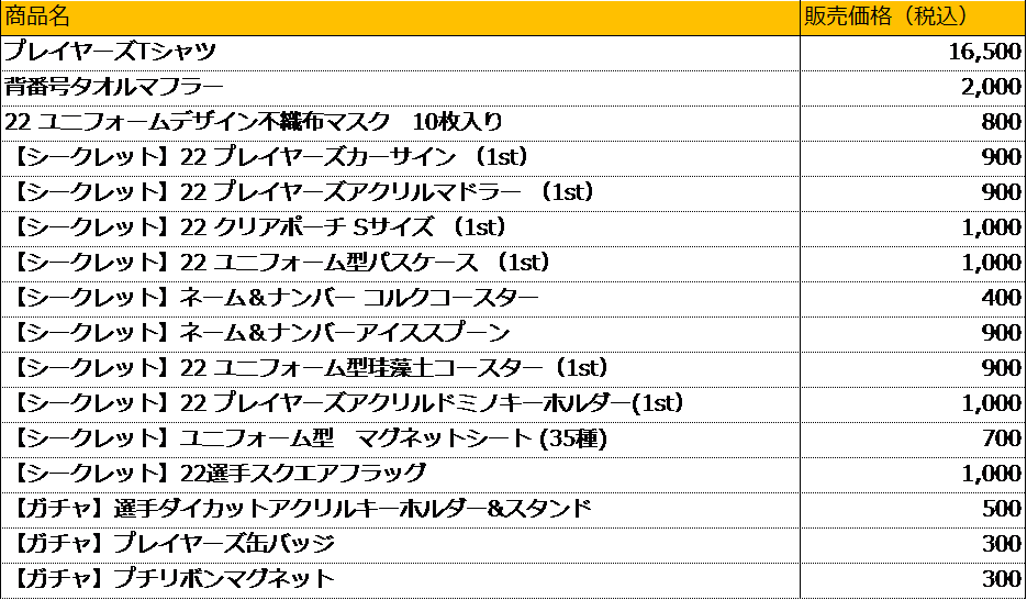 販売場所:場内モバイルコーナー 西サイド、バックスタンド