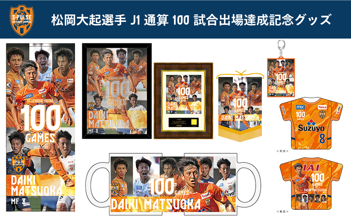 5月29日(日)の明治安田生命J1リーグ 第16節柏レイソル戦において、松岡大起選手がJ1リーグ通算100試合出場を達成しましたので、記念グッズを予約販売いたします。