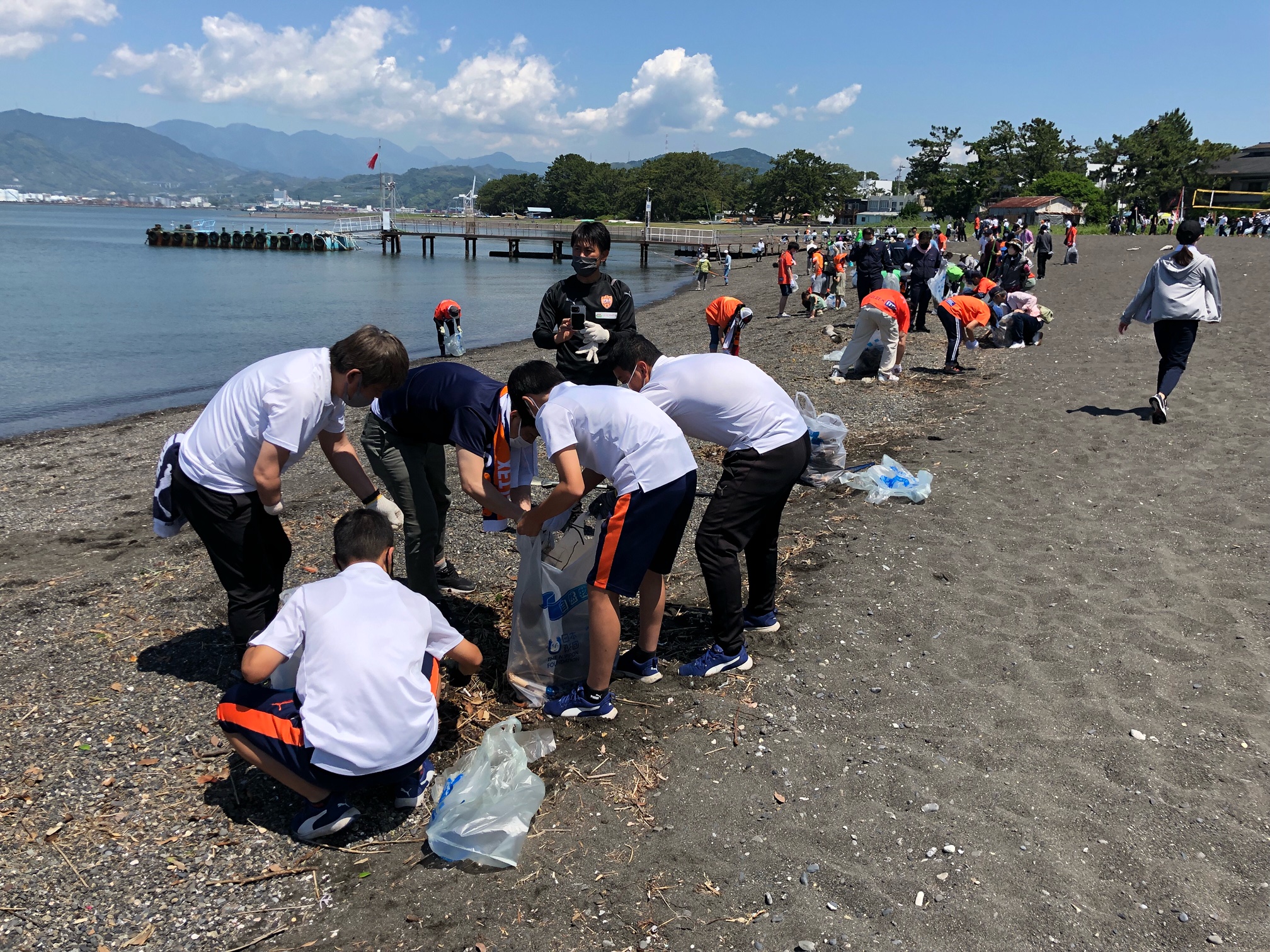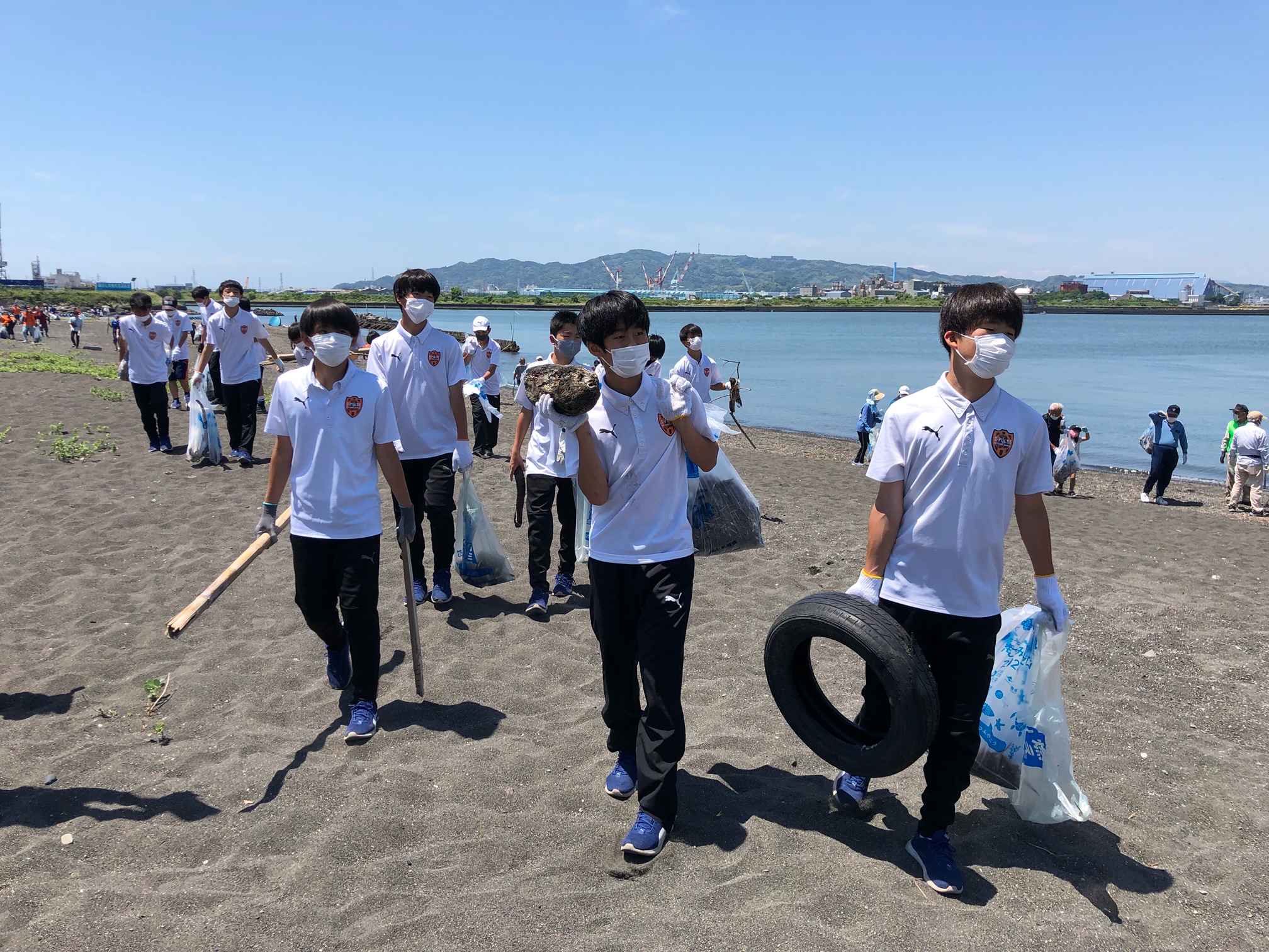 当日は天候に恵まれ、エスパルスからもジュニアユースの選手とスタッフの約40名が参加し、地域の方々や海に関わる各団体を中心に480名程度の方と一緒に清掃活動を行い、三保の内浜のクリーンアップ作戦に成功しました。ご参加下さいました方々には御礼申し上げます。