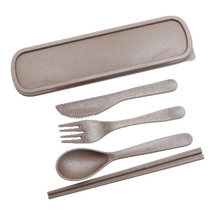 コーヒーかすの再利用×生分解性素材を使用したケース付きカトラリーセット。廃棄予定のコーヒー抽出後のかすを15%使用しています。スプーン・フォーク・ナイフ・箸の4点セット。ケースまで丸ごと洗えて衛生的かつ、丸みのある形状が個性的でおしゃれです。ケースに同系色のエスパルスロゴ入り。