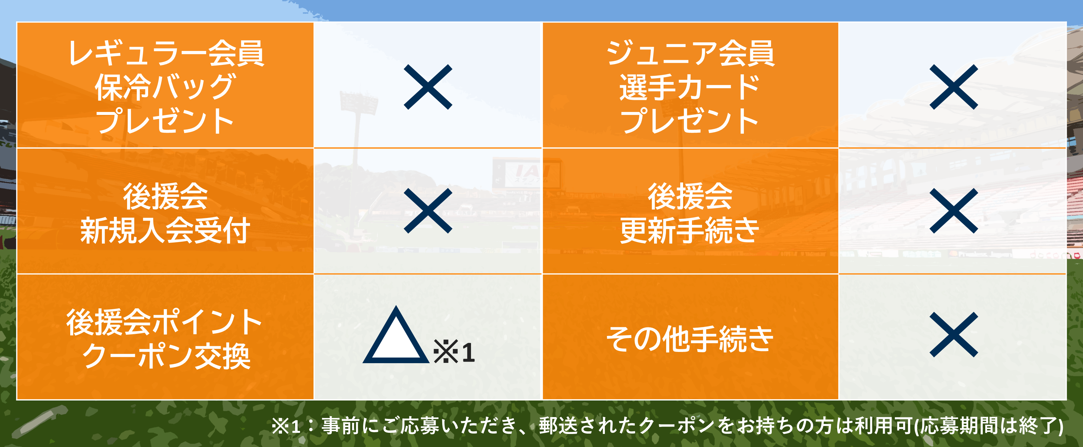 当日はエスパルス後援会ブースの設置がないため、通常のサービス提供ができません。申し訳ありませんが、ご承知おきいただければと思います。