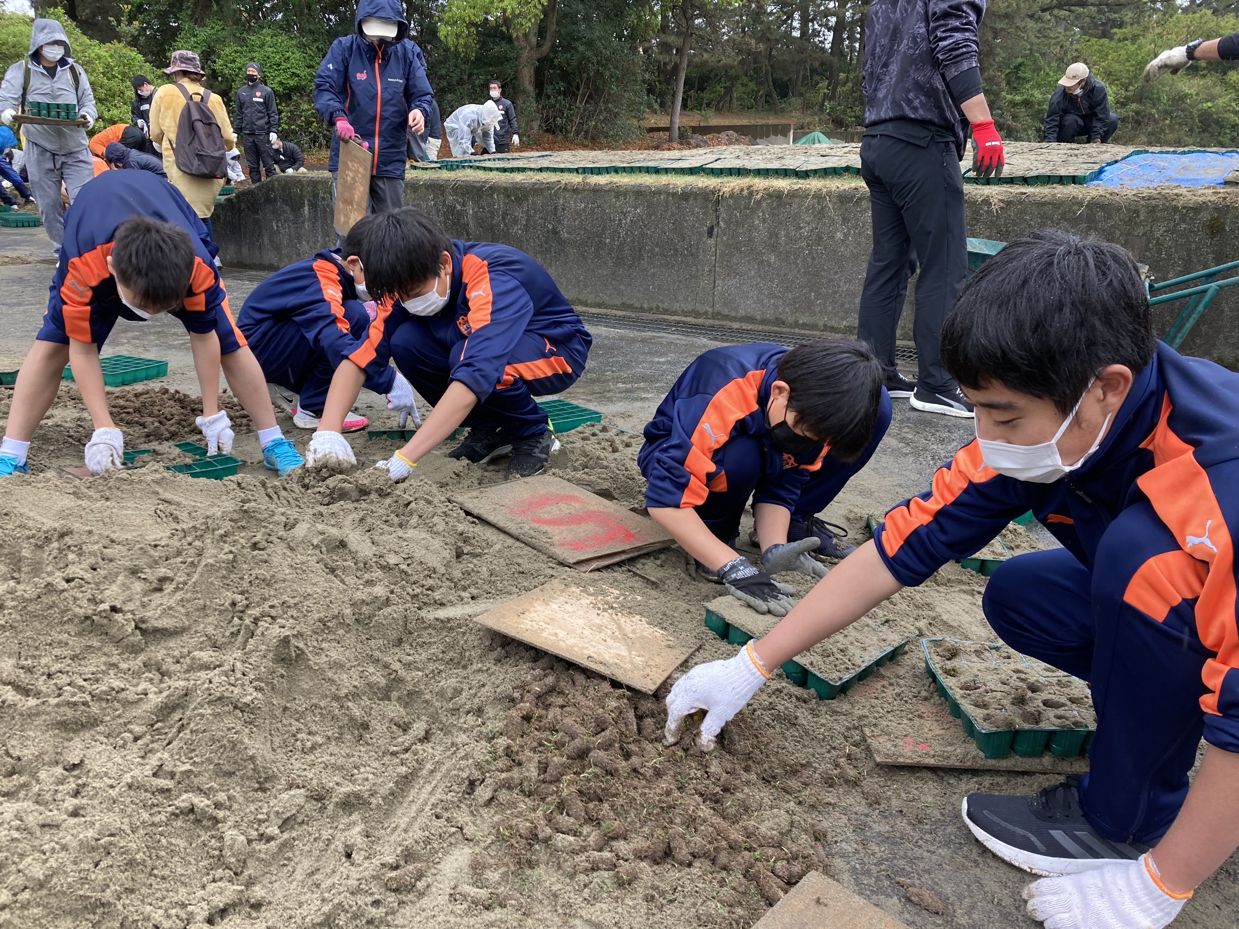サッカープレーヤーとしての活動だけでなく、ホームゲームのボールパーソンやポット苗作りなど、多種多様な活動を通して人間形成に取り組んでいます。