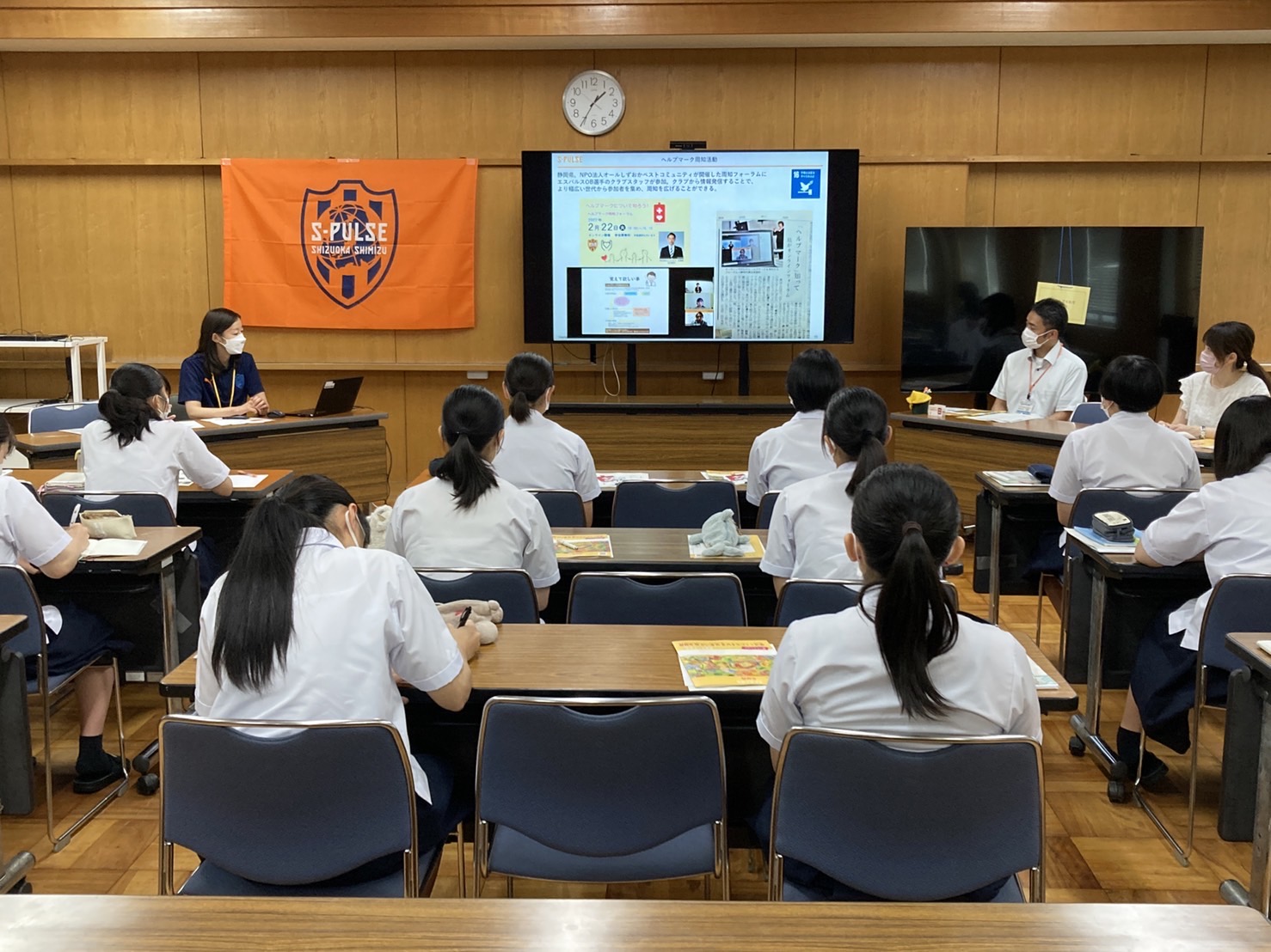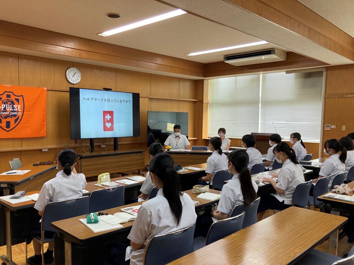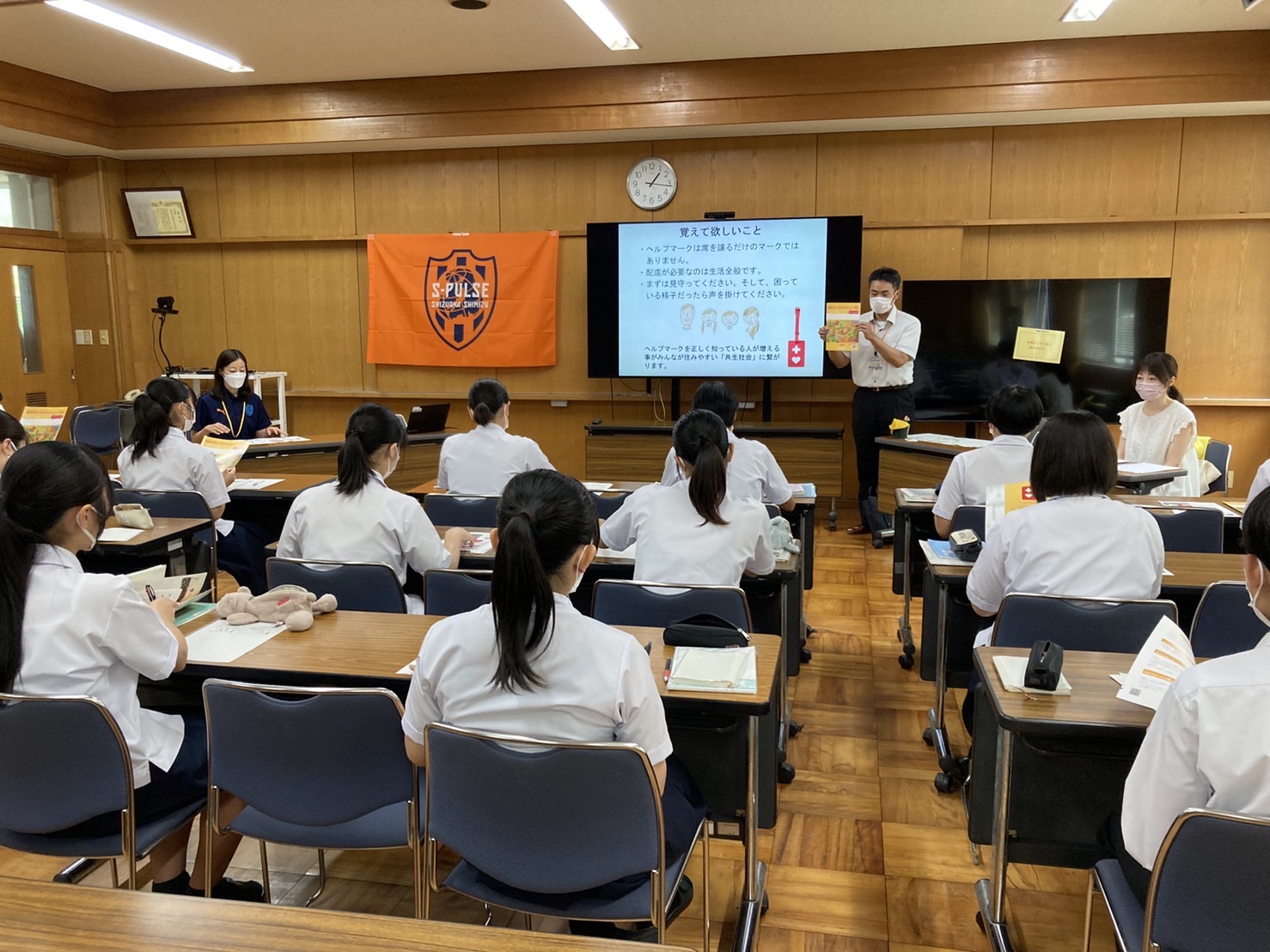 7月8日(金)静岡県立静岡商業高校にて、~ホームタウン静岡市 高校生コラボ企画~『共生社会の実現に向けた社会連携企画/ヘルプマーク・ヘルプカード講座』を実施し、エスパルス ホームタウン営業部のスタッフが参加しました。