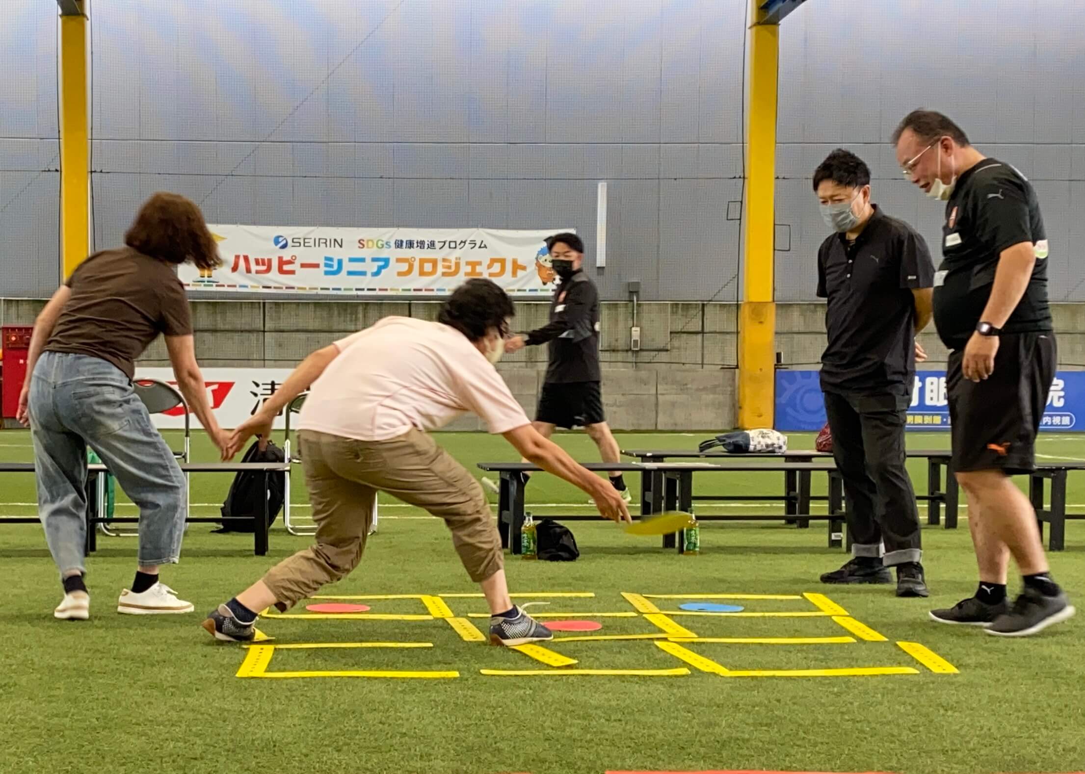 7月15日(金)、エスパルスドリームフィールド清水(静岡市清水区袖師町)にて、第4回 SDGs健康増進プログラム セイリン PRESENTS 「ハッピーシニアプロジェクト」 ~運動とはりで健康に~ を開催しました。