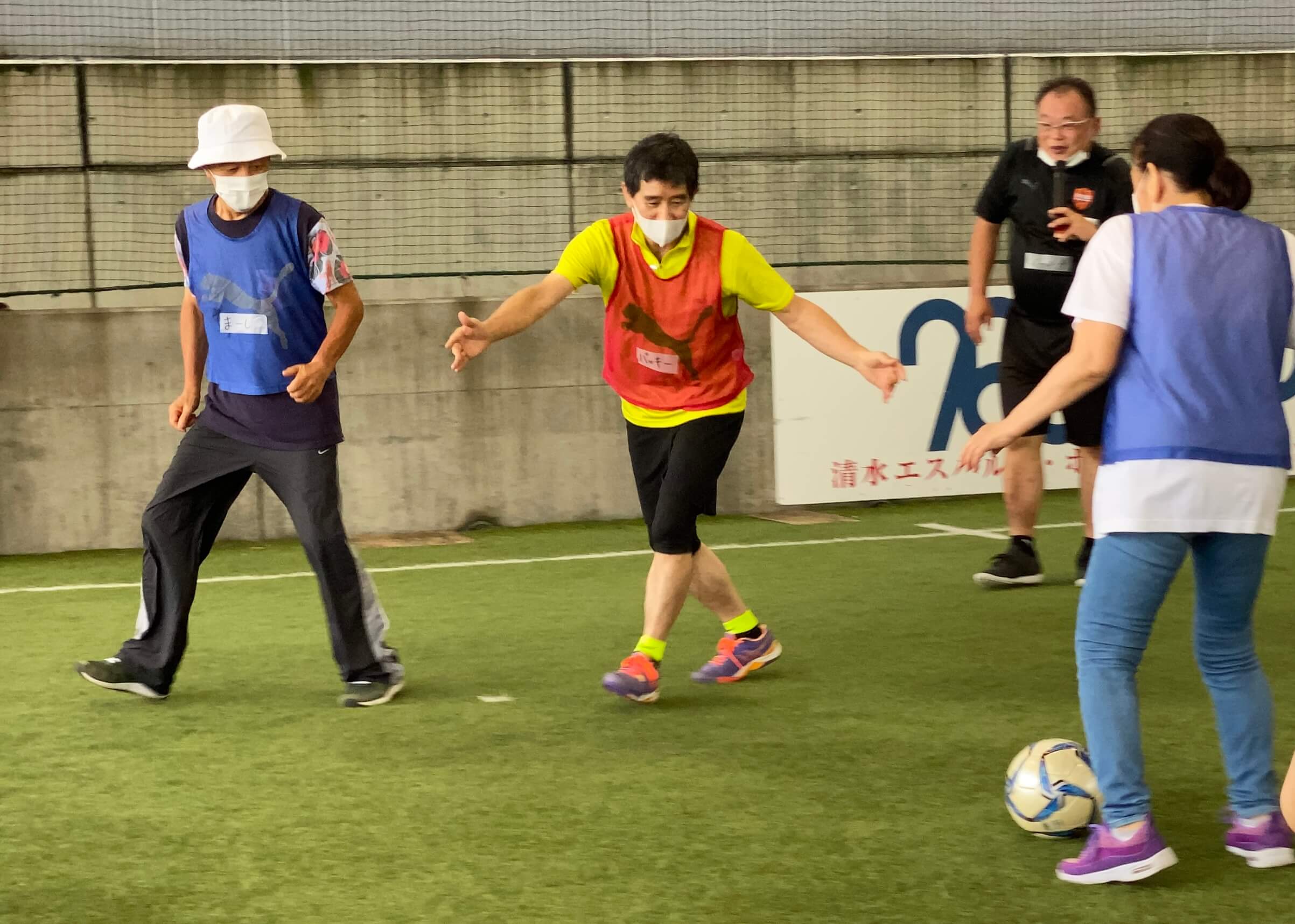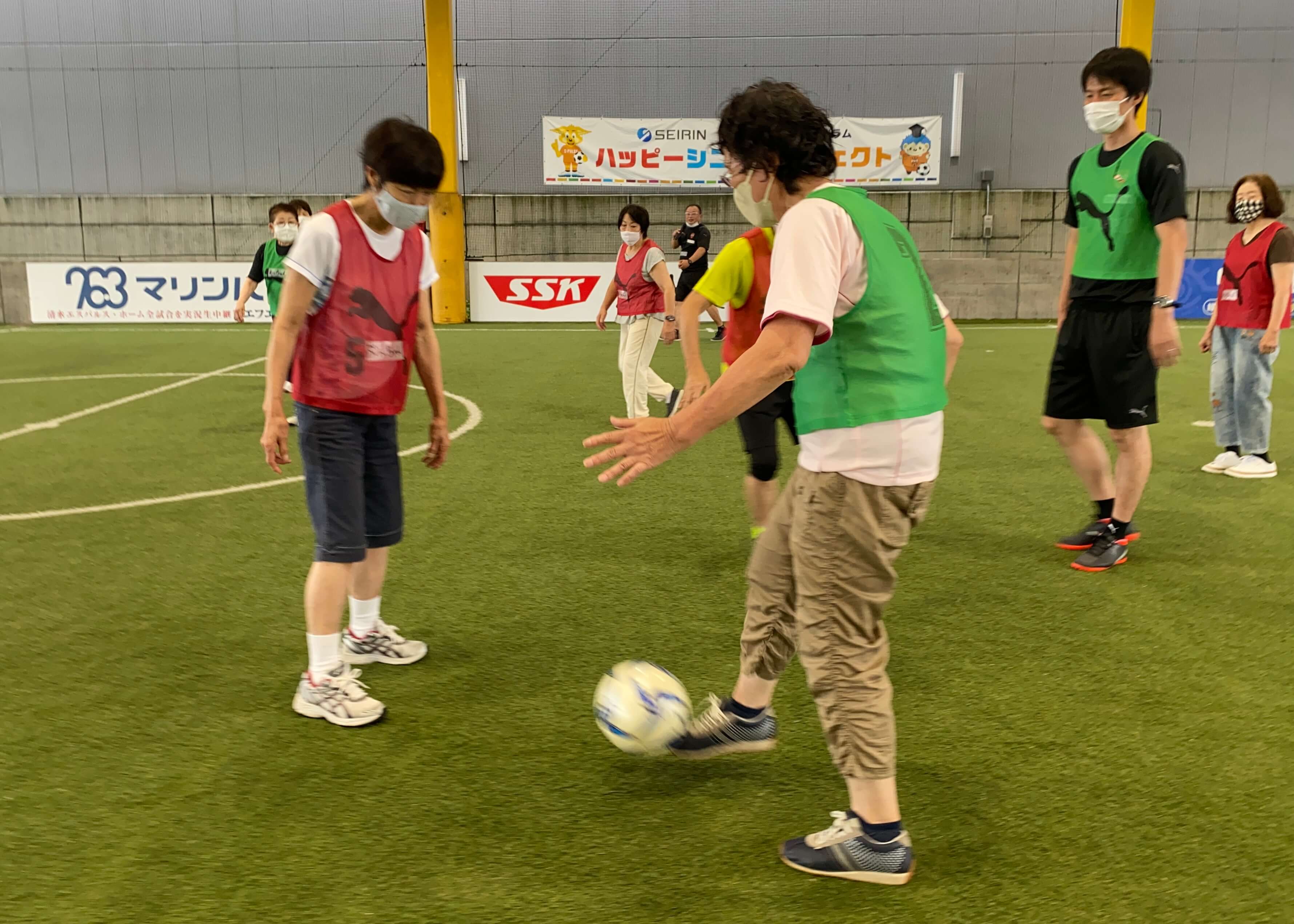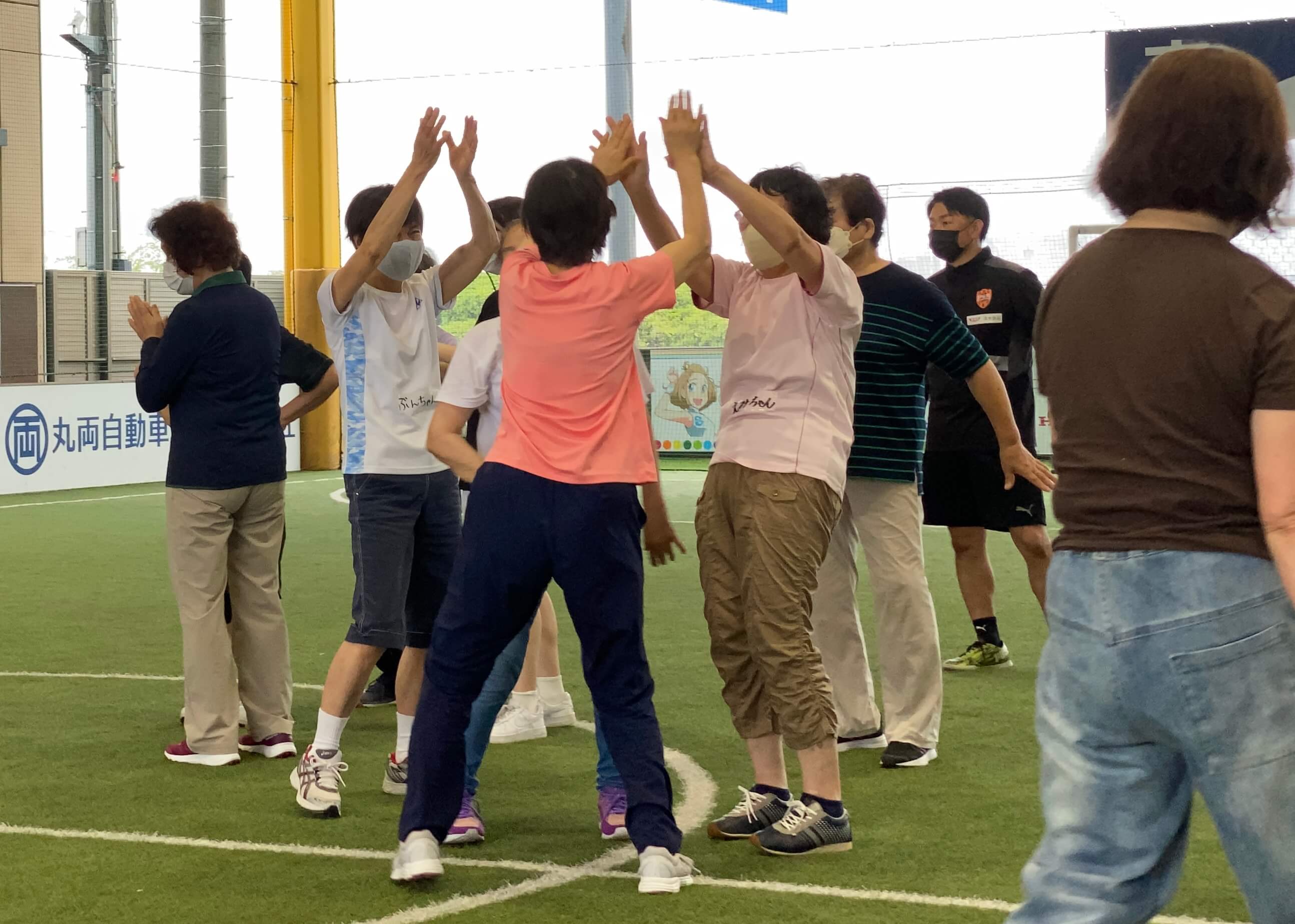 走るのも、ぶつかるのも禁止のウォーキングサッカーは、体力に自信がない方でも怪我無く安心です。今回初めてチャレンジした皆さんも、普段サッカーをプレーすることが全くない皆さんでも、楽しく安全にプレーすることができました。ゴールが決まった瞬間には、チームメイトと喜びを共有しあい、身体や脳の活性化だけでなく、コミュニティの場としても非常に楽しい時間を過ごしていただきました。また、運動の最後にはストレッチでしっかりと身体のケアをしました。