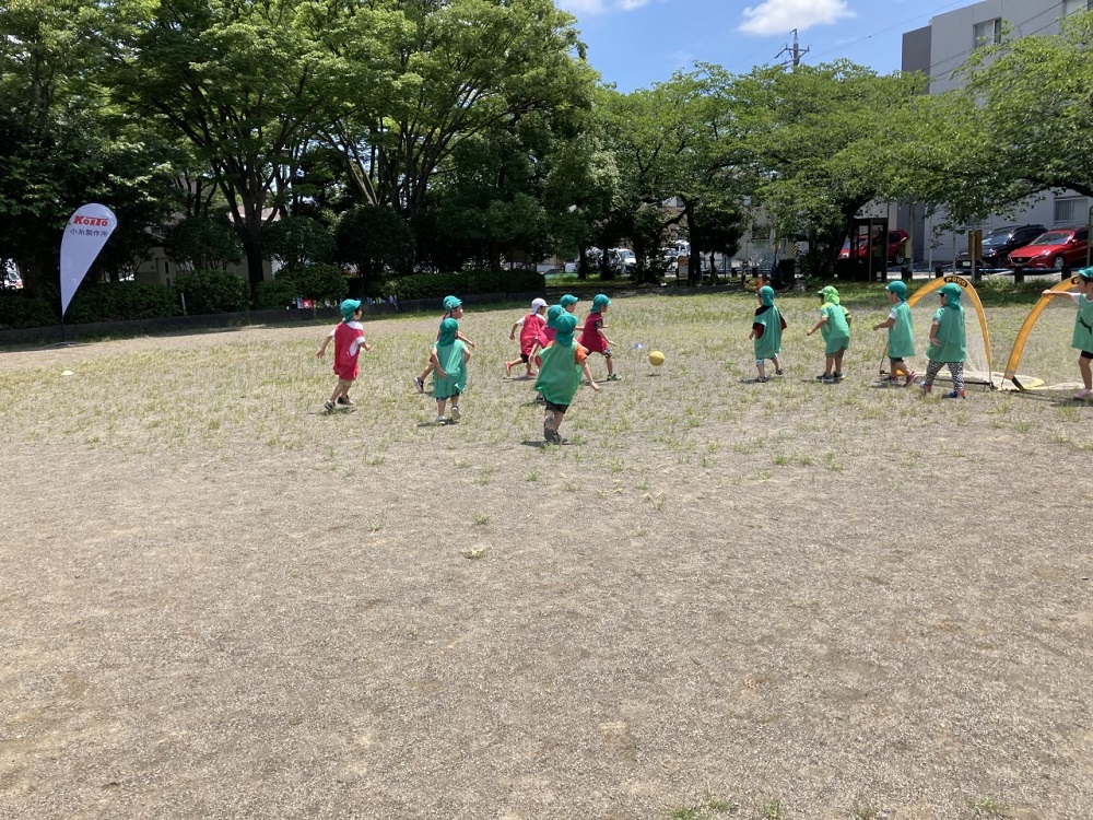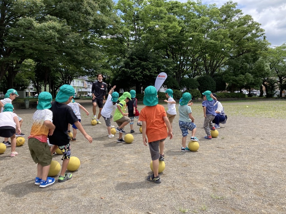 エスパルスアカデミーは、 7月7日(木)、たんぽぽ保育園を訪問し、池田公園にて巡回スポーツ教室を実施いたしました。