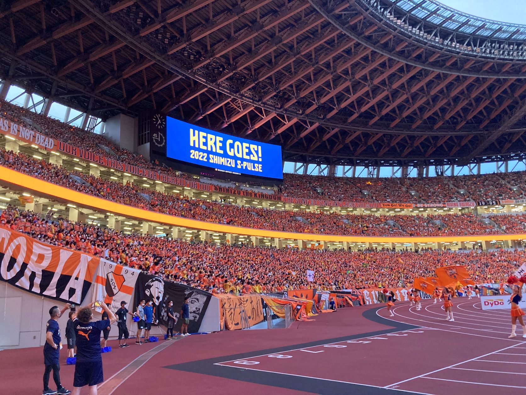 キックオフ前の盛大なセレモニーと往年の選手やスタッフのメッセージがエスパルスの歴史を感じさせる雰囲気の中、6万人の観客の目の前でいよいよ、キックオフ!