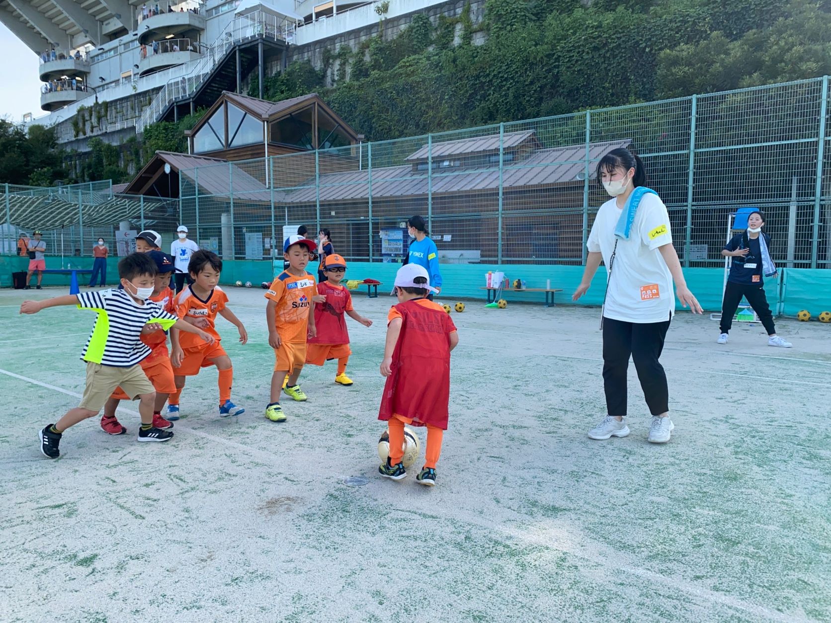 『最初は、どのようにしたら子どもたちが楽しみながら体を動かしてくれるか分からず、不安も多かったけれど、エスパルスサッカースクールの打桐さんのアドバイスを通して、子どもへの関わり方を学ぶことができました。ペアの子にも最後に「ありがとう」と言われてとてもうれしい気持ちになると同時に、やりがいを感じました。また、ぜひこのような企画を考えてみたいと思います。』