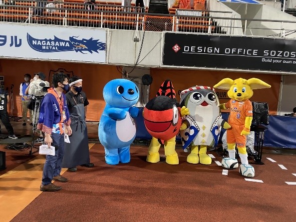 「冷凍マグロ水揚げ量日本一の清水港」をPRするため、ハーフタイムに清水港マグロまつり実行委員会がピッチを周ります。