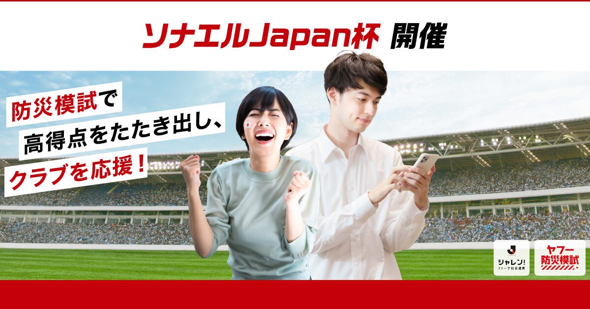 ヤフーとJリーグシャレンは災害の被害を少しでも減らしたいという想いから、協働で「ヤフー防災模試 ソナエルJapan杯」を開催し、防災知識・意識の向上を目指します。