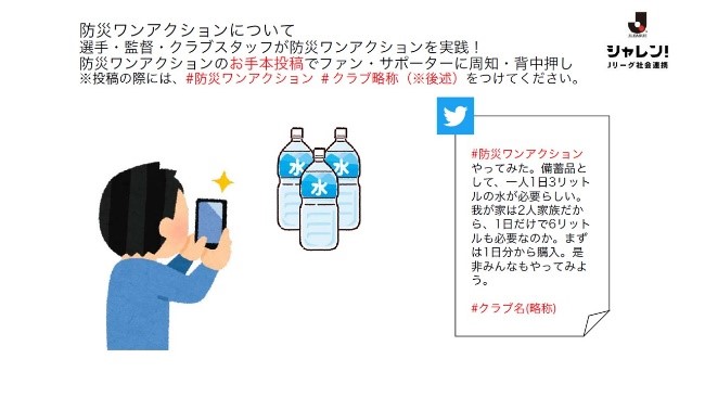防災・災害への備えを#防災ワンアクション#クラブ名(清水)をつけてツイッターに投稿すると勝ち点1が付与されます。