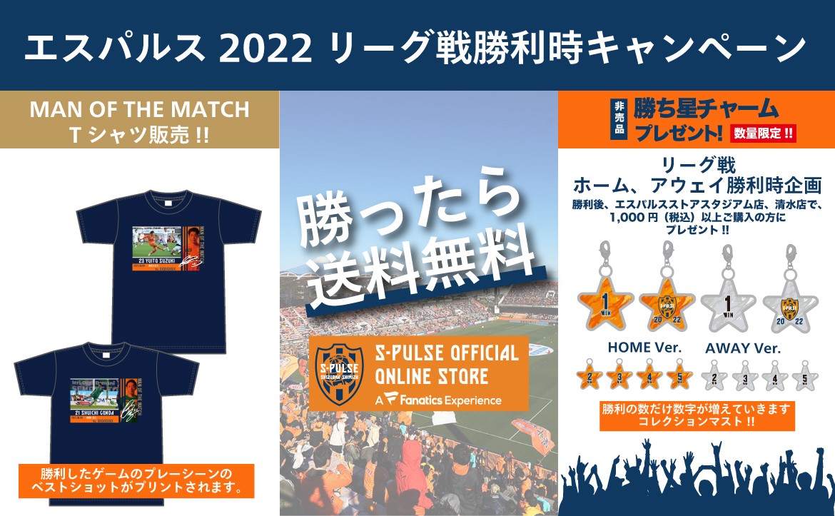 また、S-PULSE STOREでは、勝利時翌営業日の開店から、「勝ち星チャーム(非売品)」を先着でプレゼントします。