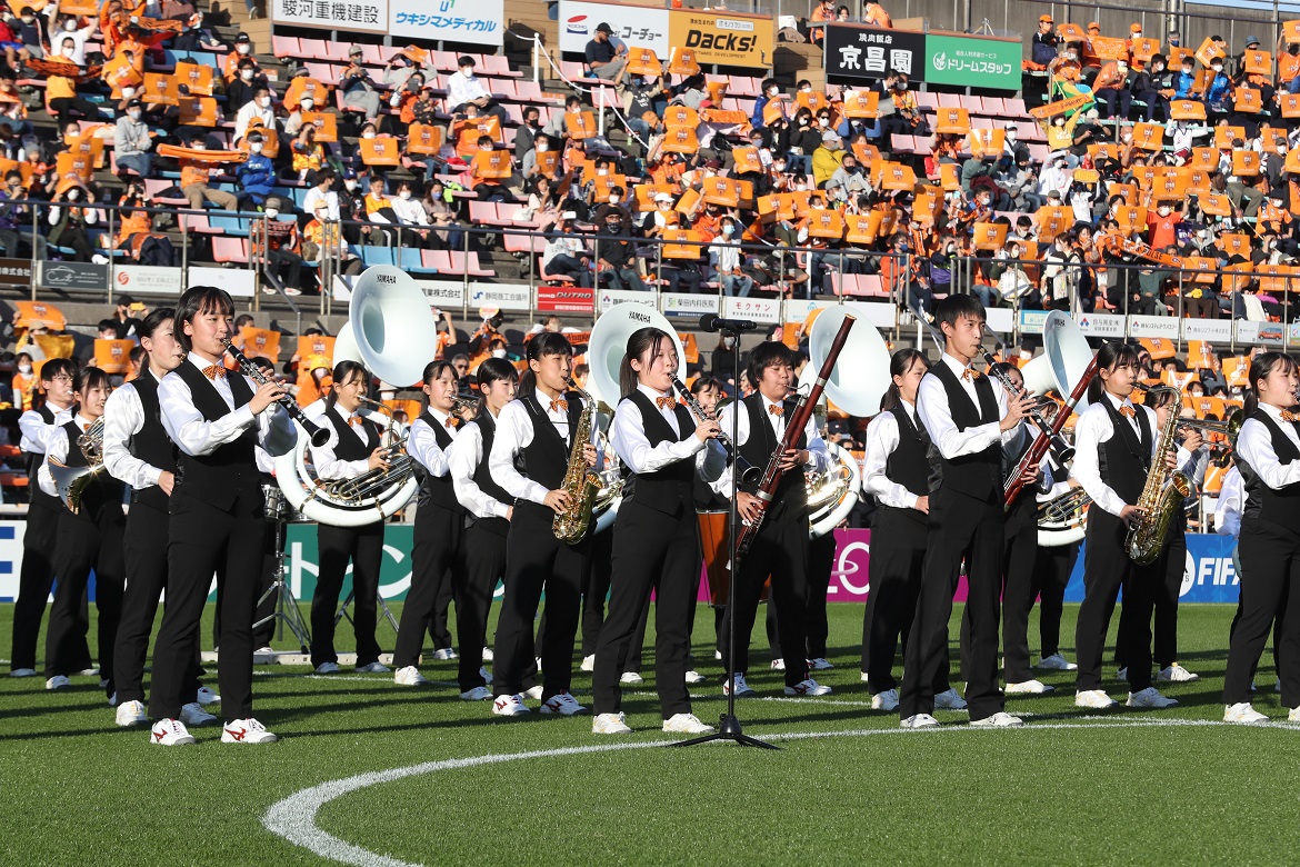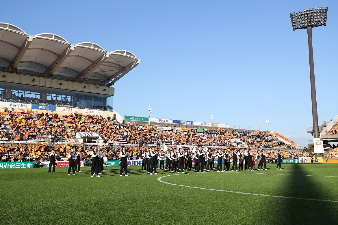 静岡市立清水桜が丘高校 吹奏楽部が選手入場時にピッチで「雷神」を生演奏します。