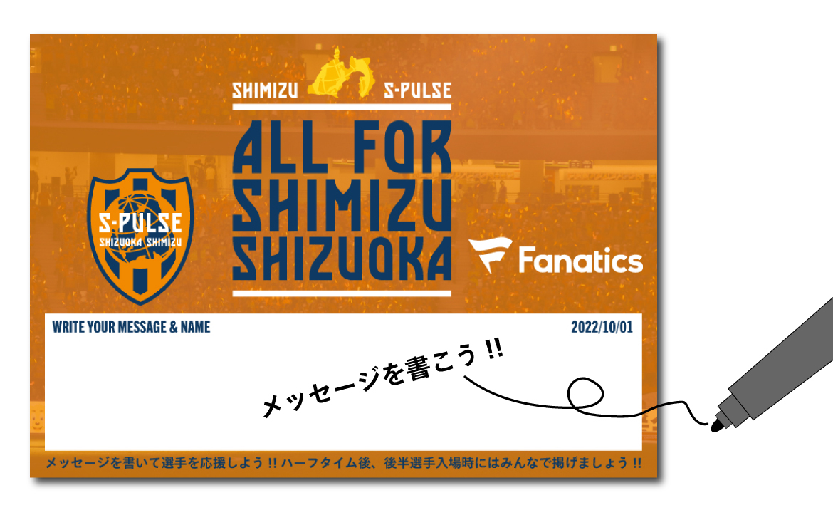 - あなたの想いを選手に届けよう!- ALL FOR SHIMIZU SHIZUOKA メッセージボードを先着16,000名様に配布!