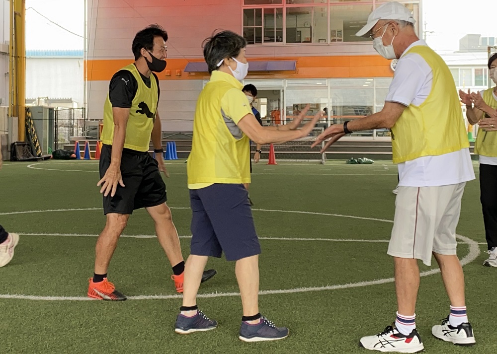 走るのも、ぶつかるのも禁止のウォーキングサッカーは、体力に自信がない方でも怪我無く安心です。今回初めてチャレンジした皆さんも、普段サッカーをプレーすることが全くない皆さんでも、楽しく安全にプレーすることができました。ゴールが決まった瞬間には、チームメイトと喜びを共有しあい、身体や脳の活性化だけでなく、コミュニティの場としても非常に楽しい時間を過ごしていただきました。また、運動の最後にはストレッチでしっかりと身体のケアをしました。