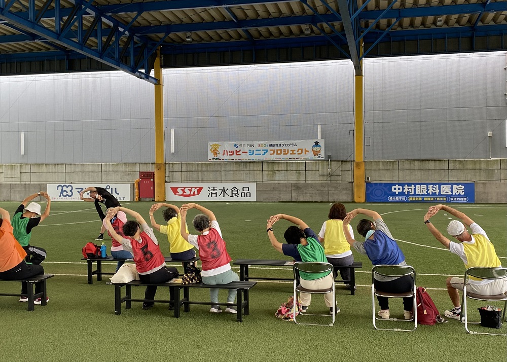 8月30日(火)、エスパルスドリームフィールド清水(静岡市清水区袖師町)にて、第5回 SDGs健康増進プログラム セイリン PRESENTS 「ハッピーシニアプロジェクト」 ~運動とはりで健康に~ を開催しました。