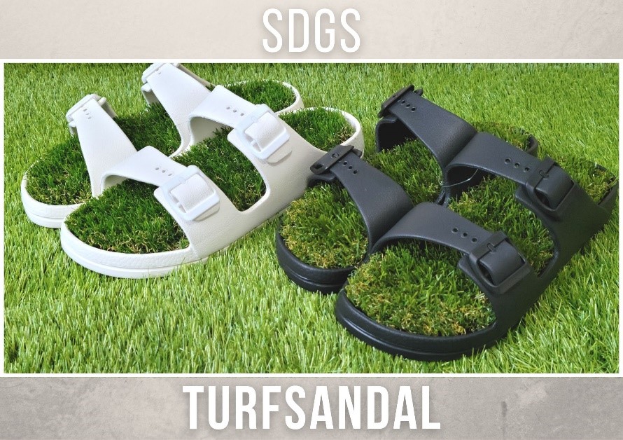 株式会社エムズでは、ブースで人工芝の紹介や、端材人工芝を再利用した「人工芝サンダル」の販売を行います。