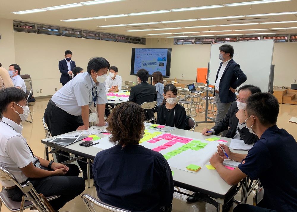 エスパルスの強みと、企業及び地域のゼロカーボンに関する取り組みや課題解決について様々な角度からアイデア出しをし、その後ゼロカーボンに向けた具体的な施策についてディスカッションしました。