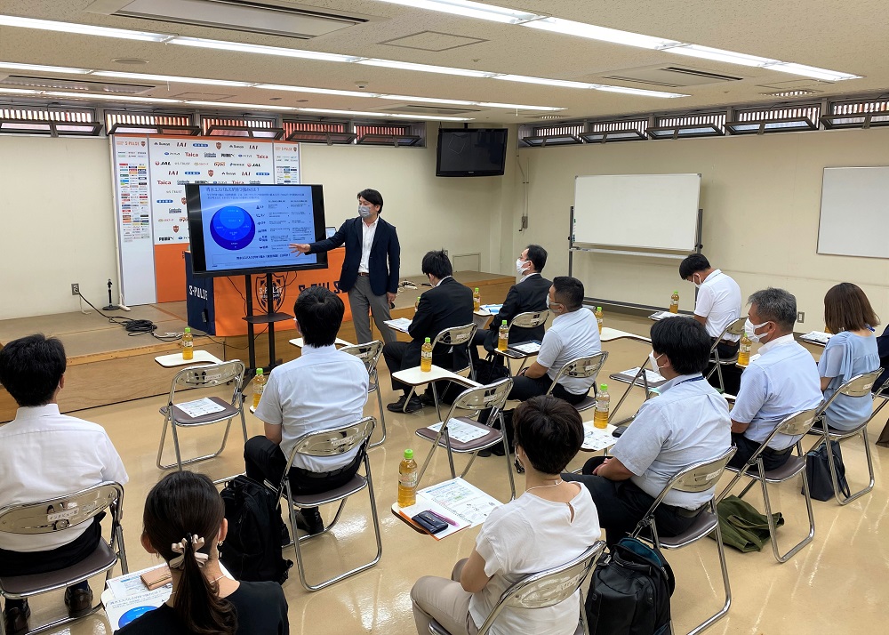 クラブとステークホルダーが共通認識として有しているゼロカーボンの推進に対して、「クラブが実施している(計画している)活動が地域にどう貢献しているか」、「ステークホルダーはクラブにどのような活動を期待しているか」、また、「パートナーと協働してどのような活動ができるのか」等について、具体的な活動と将来目標を明確化すること及び新たな共創を模索することを目的に、株主を中心としたパートナー企業及び静岡市より参画いただき、第1回目のワークショップ開催しました。
