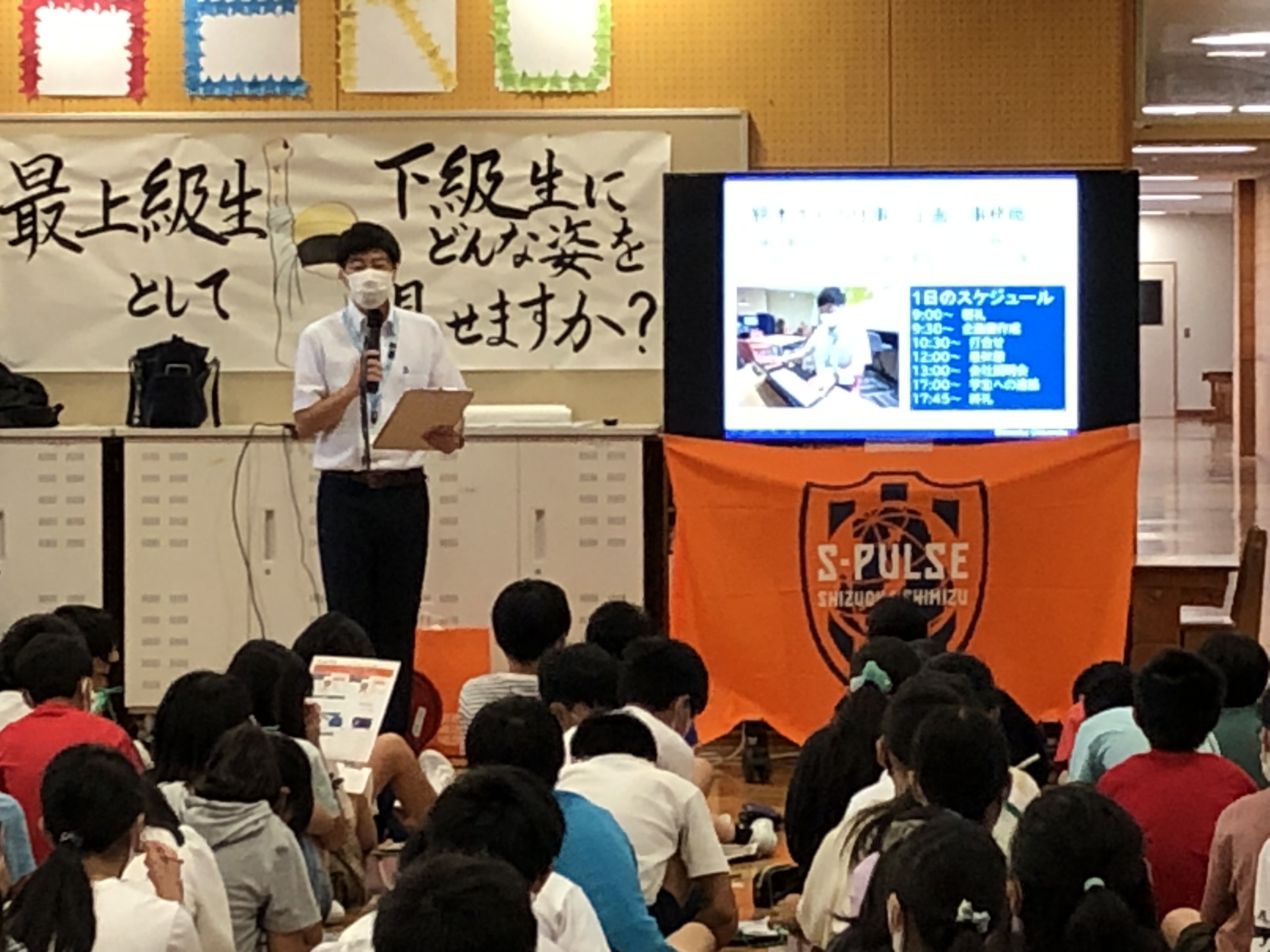 9月8日(木) 静岡市立番町小学校にて、クラブパートナーのトヨタユナイテッド静岡株式会社よりゲスト講師3名を迎え『エスプラス』「地域貢献や社会に出て必要なチカラを考えるキャリア教育授業 ~自動車産業編~」を実施しました。