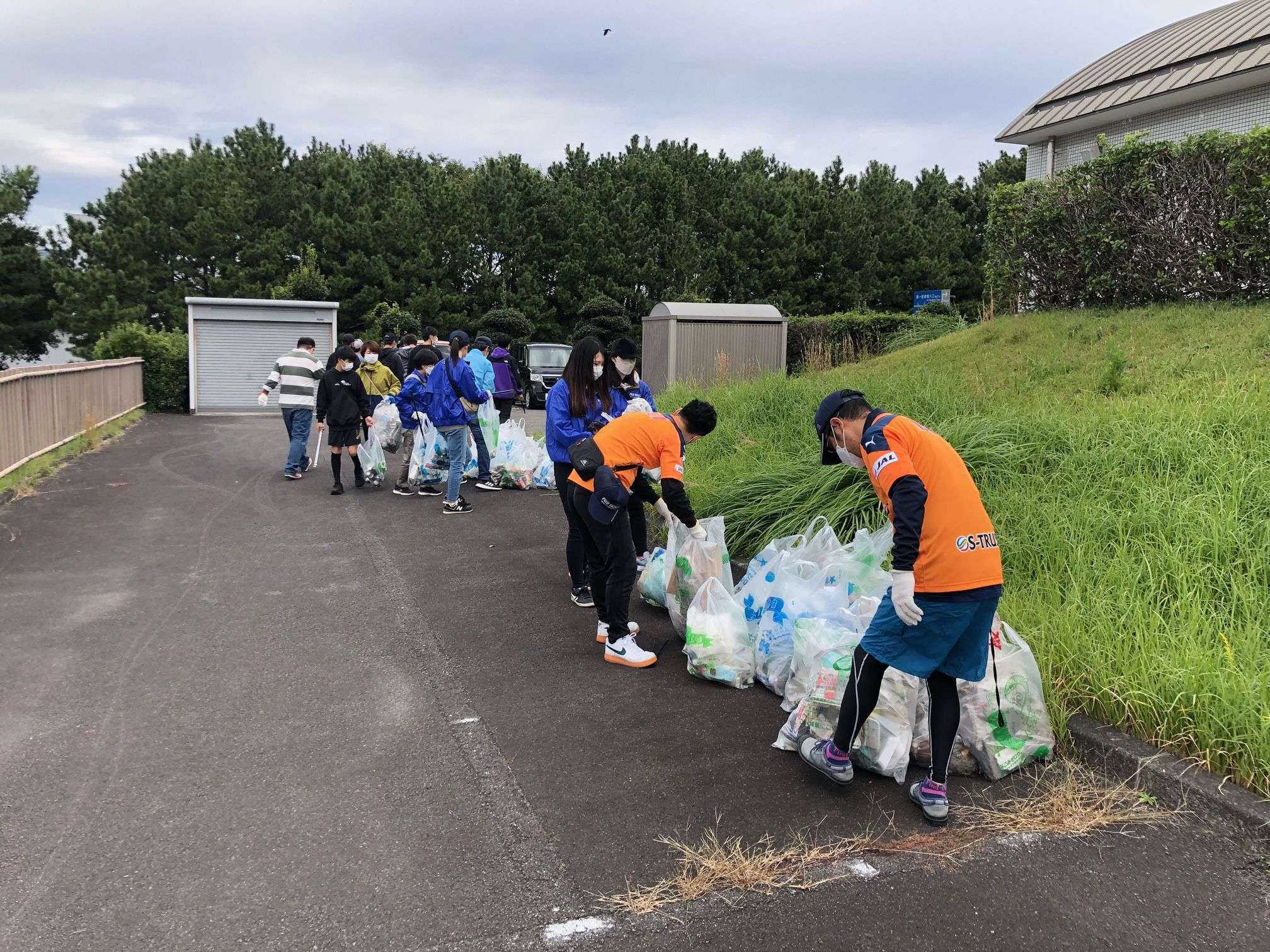10月22日(土)に清水エスパルスとクラブパートナーの富士工業(株)様が協働しておこなう社会貢献活動『Sports&Fishing』プロジェクトとして、静岡市広野海岸公園・用宗漁港において実施された「水辺感謝の日」清掃活動に参加いたしました。