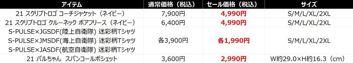S-PULSE STORE・エスパルス公式オンラインストア共通セール商品