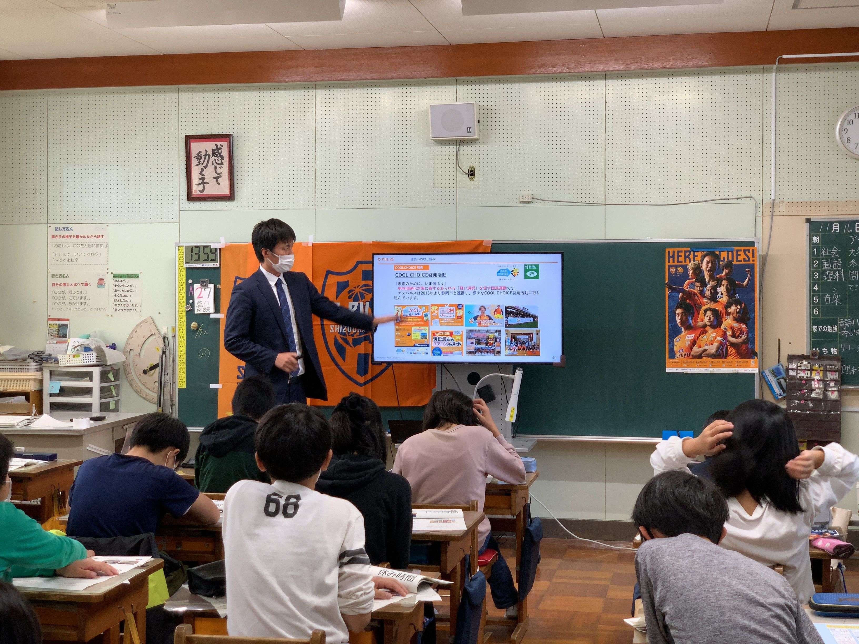 11月15日(火)に静岡市立足久保小学校にて小学6年生を対象に『SDGsと環境問題について考えよう』の授業が行われ、(株)エスパルス ホームタウン事業部のスタッフが参加しました。