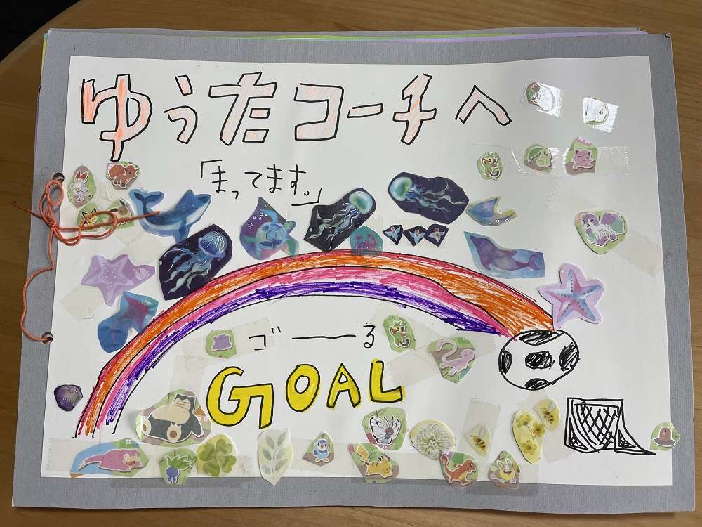 そして、寄せ書きはケガをしてお休みをしていた時に静岡のスクール生からプレゼントしてもらった物です。みんなの気持ちがとても嬉しく今でも大切にしており家の中に飾っています。