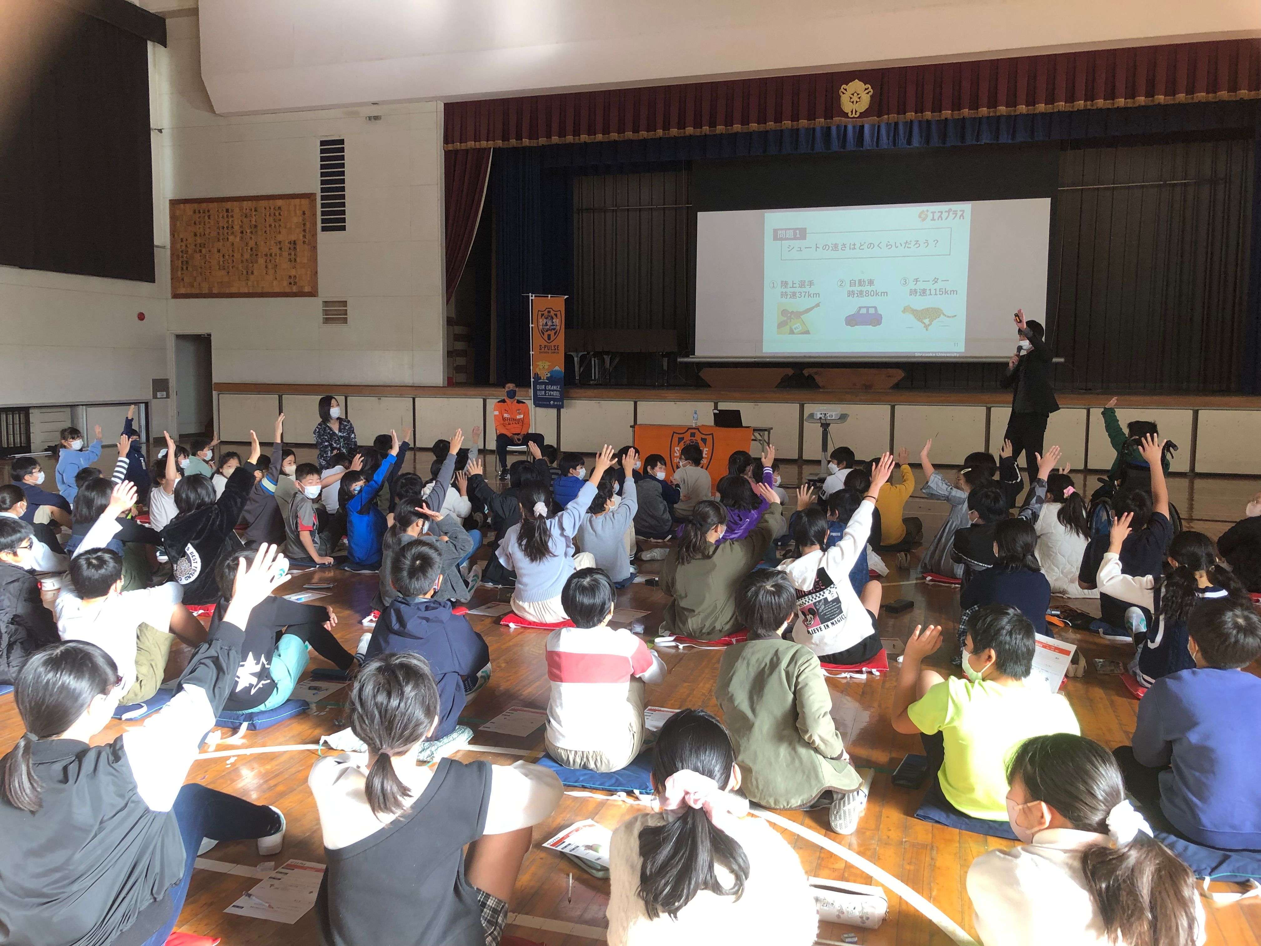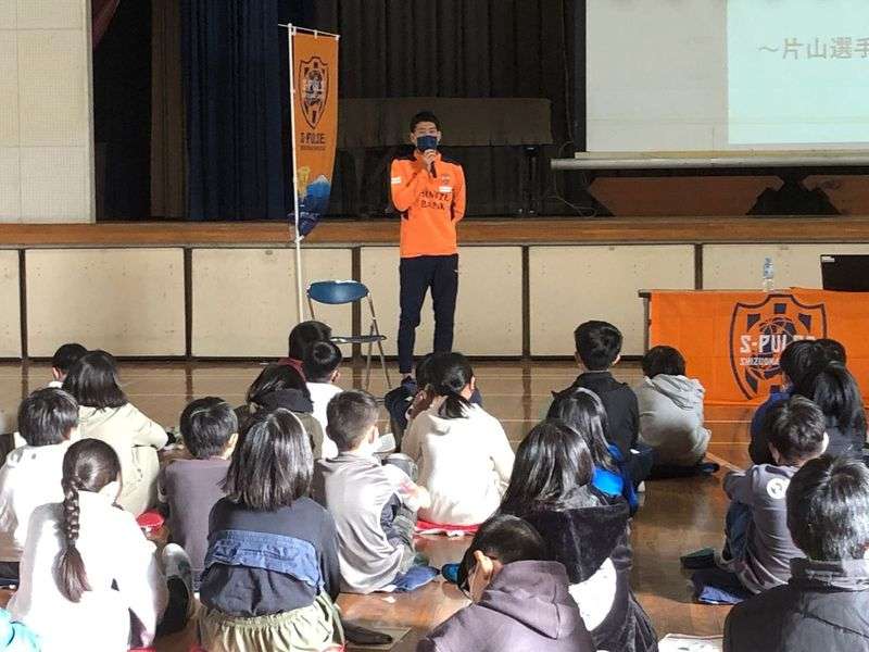 12月14日(水) 静岡市立葵小学校にて、片山瑛一選手を講師に「エスプラス~サッカーを科学的に考えてみよう~ 」を実施しました。