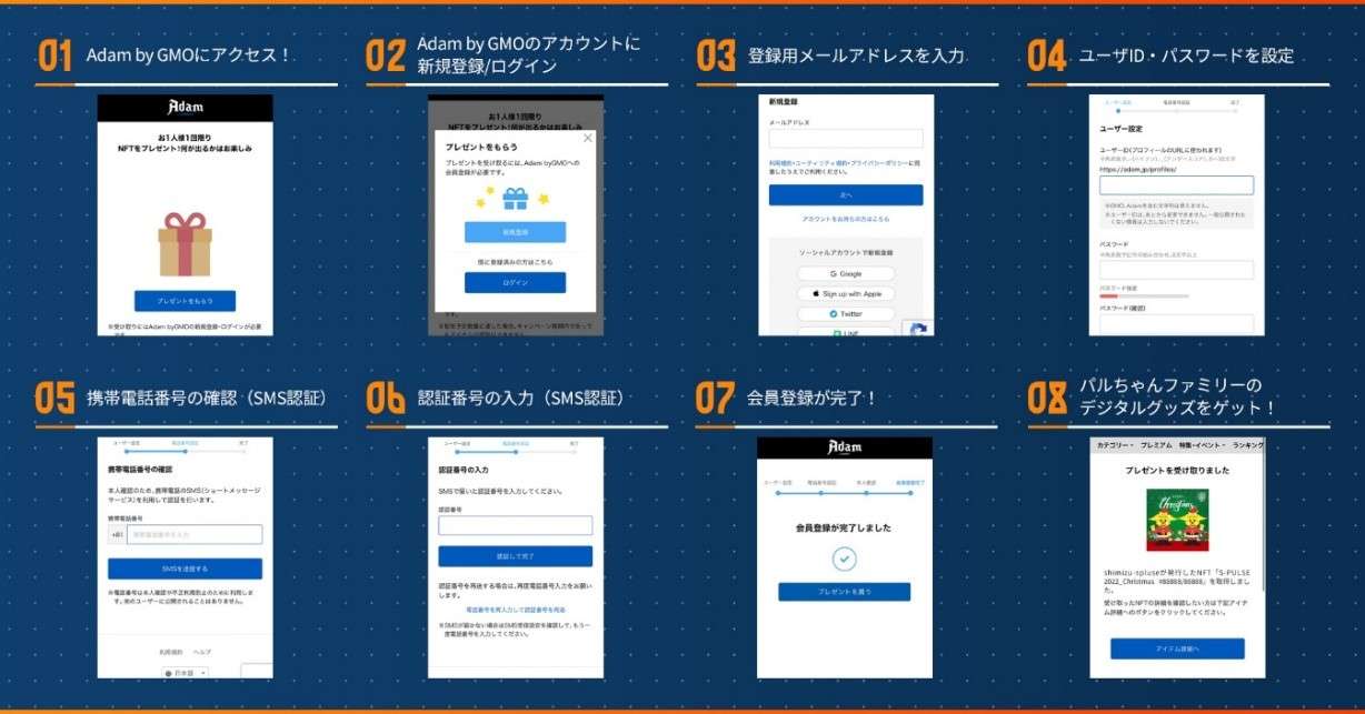 Adam by GMOのアカウント登録及び『パルコレ』のお受け取り手順