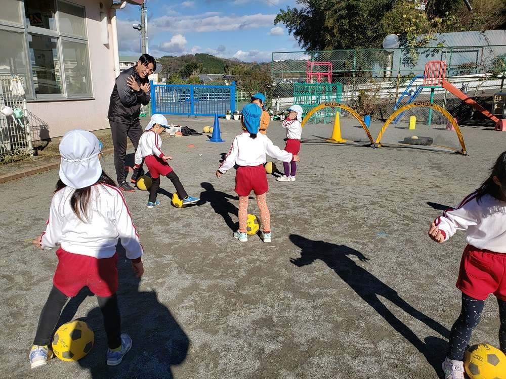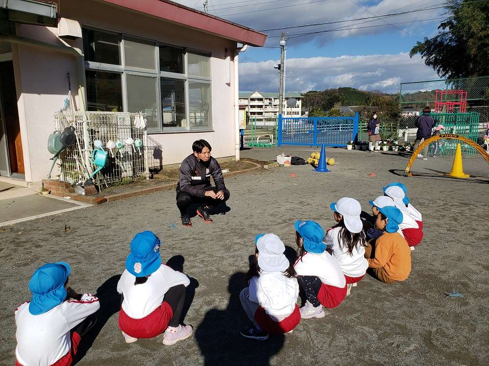 天候にも恵まれ、楽しく活動ができました。小規模な園でしたが、みんな個性豊かで元気いっぱい。様々なプログラムにも全力で取り組んでくれました。教室終了後にはもっとサッカーがしたかったとの声もあがり、運動の楽しさが伝わったようで嬉しく思います。