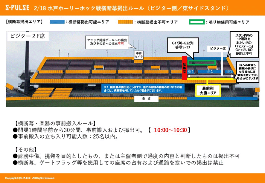 安心と安全を感じられる観戦環境を皆様と一緒に築いて参りたいと思いますので、ご理解、ご協力の程よろしくお願いいたします。