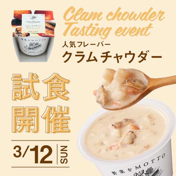 通常価格2,004円が半額の1,000円。当日は「野菜をMOTTO」のクラムチャウダーの試食会も同時開催します!