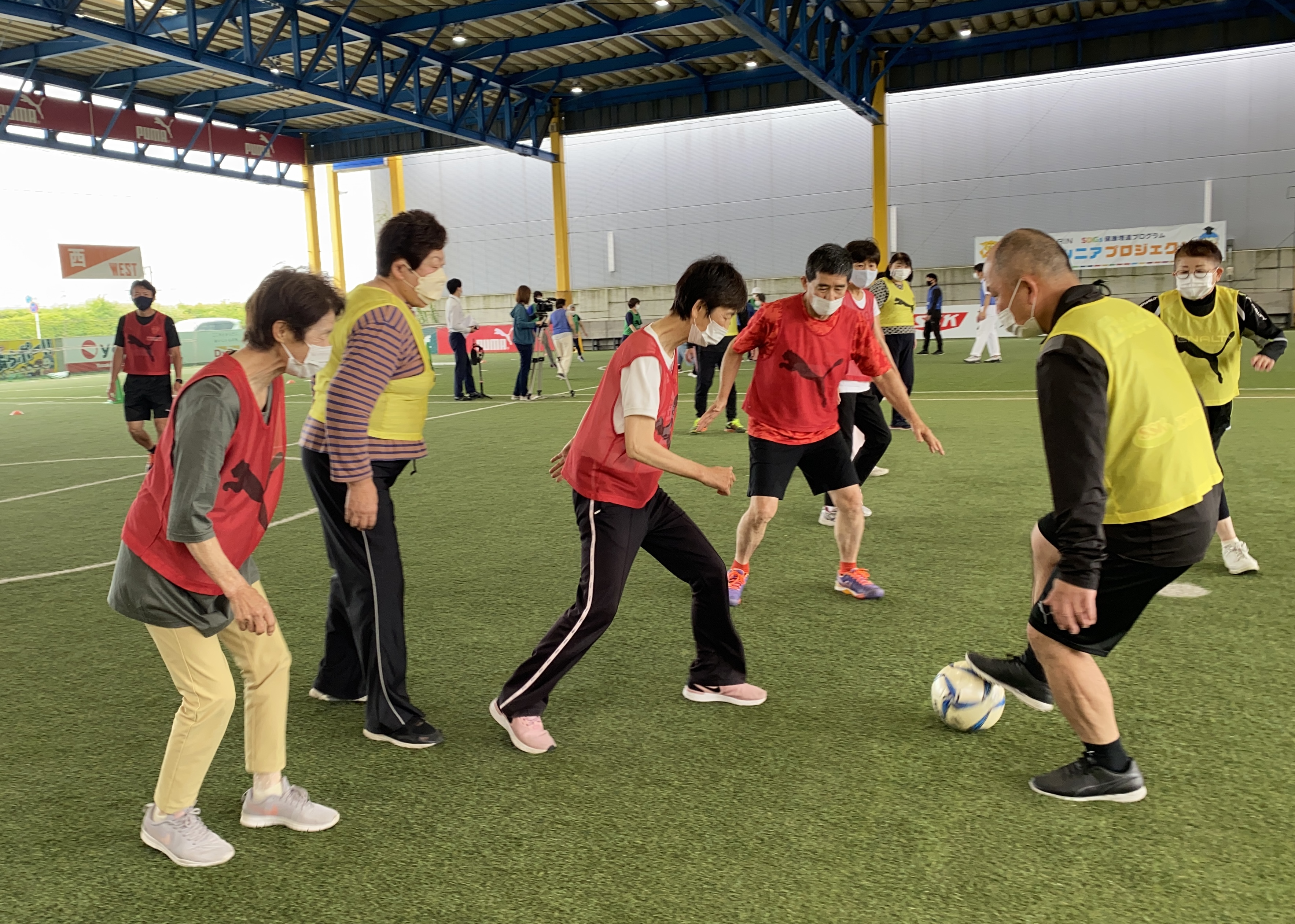 エスパルスサッカースクール藤枝エリアでは、『ハッピーシニアプロジェクト』<引退ゼロ宣言!健康な身体でめざせ100歳>を、SDF藤枝にて初開催いたします。このイベントは、地域のシニアの皆さまが、楽しい毎日を送るための健康づくりを目的としています。2つの単純な動作を組み合わせる運動で脳にも刺激を与え、誰もが楽しく行える内容になっております。