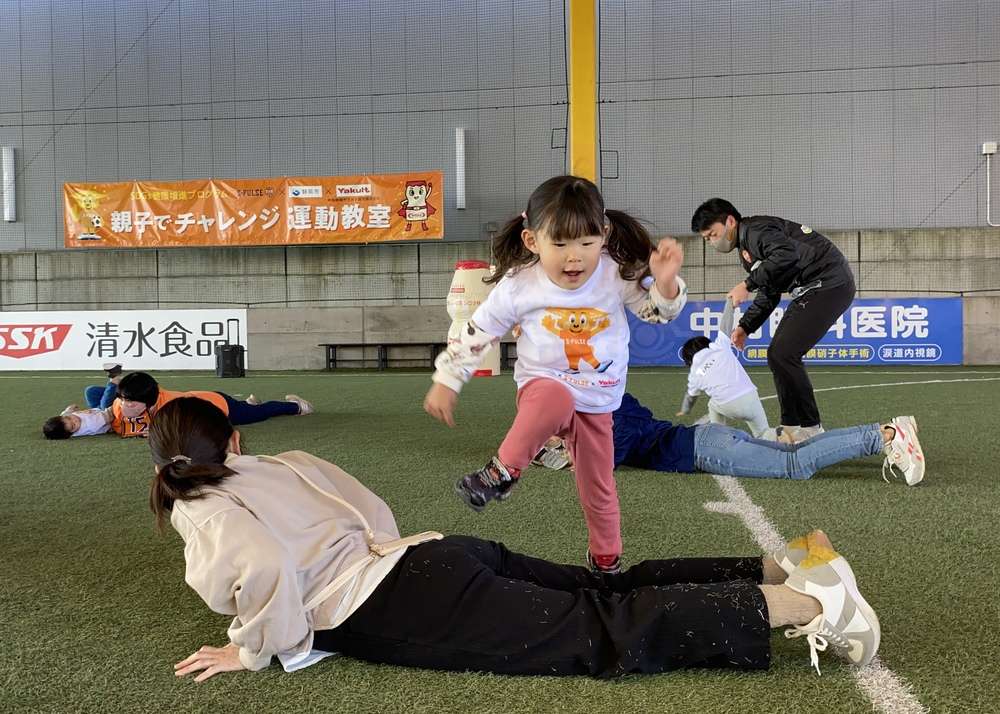2月27日(月)エスパルスドリームフィールド清水にて、SDGs健康増進プログラム 静岡市 PRESENTS 「親子でチャレンジ運動教室」Supported by ヤクルトを開催しました。11回目開催となる本日は、12組の親子の皆様にご参加いただきました。